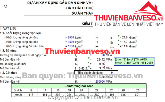 1- Vật liệu, tải trọng: