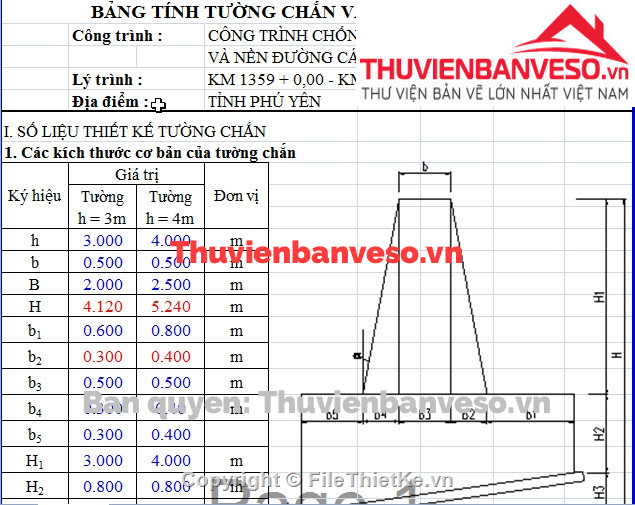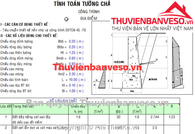 Bản tính tường chắn và ổn định mái dốc bằng Excel