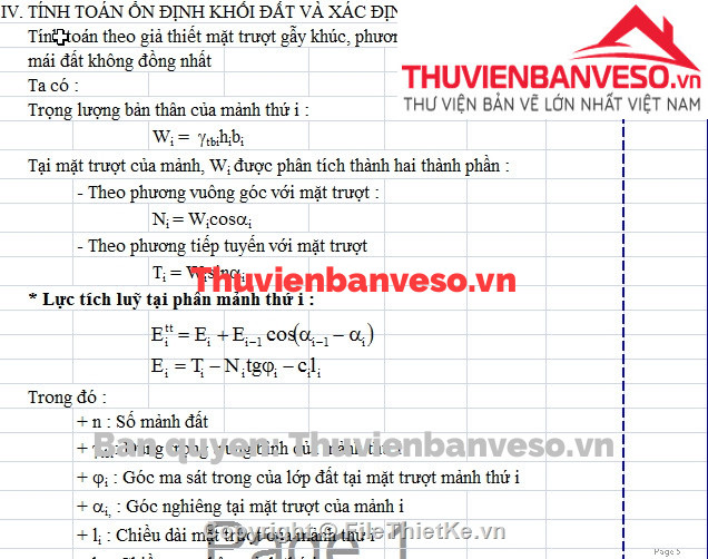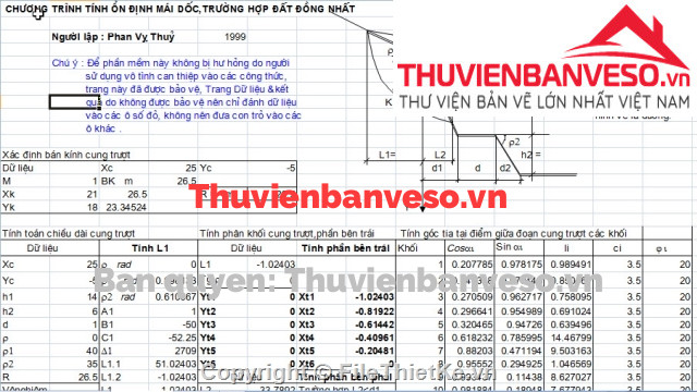 Gửi tới các bạn Bản tính tường chắn và ổn định mái dốc bằng Excel.