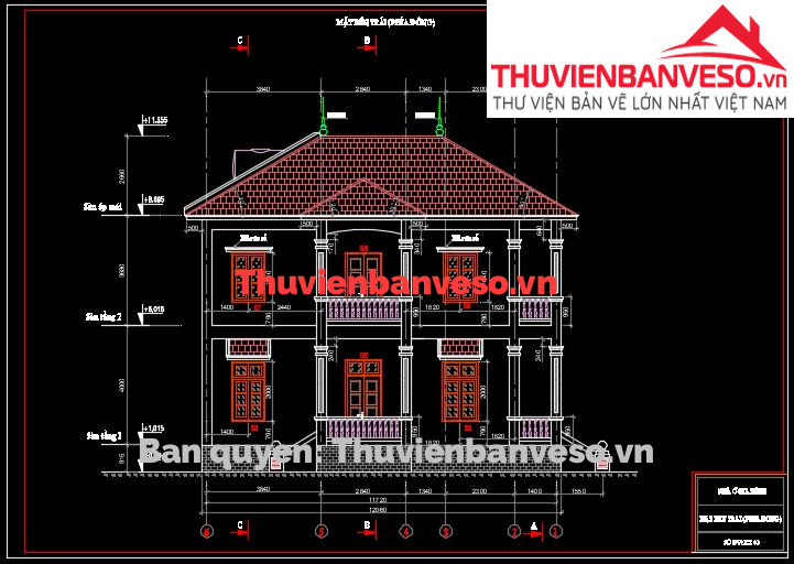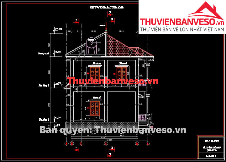 Bản vẽ nhà phố 3 tầng mái thái KT 6.5 x 17m full kiến trúc, dự toán