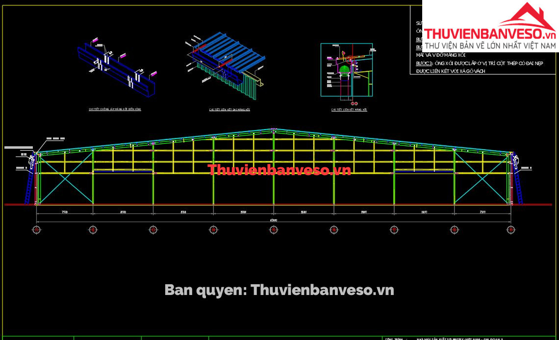 Trình tự các bước thi công khung thép là điển hỉnh với mọi loại nhà thép, vì thế bạn có thề dùng bản vẽ này
