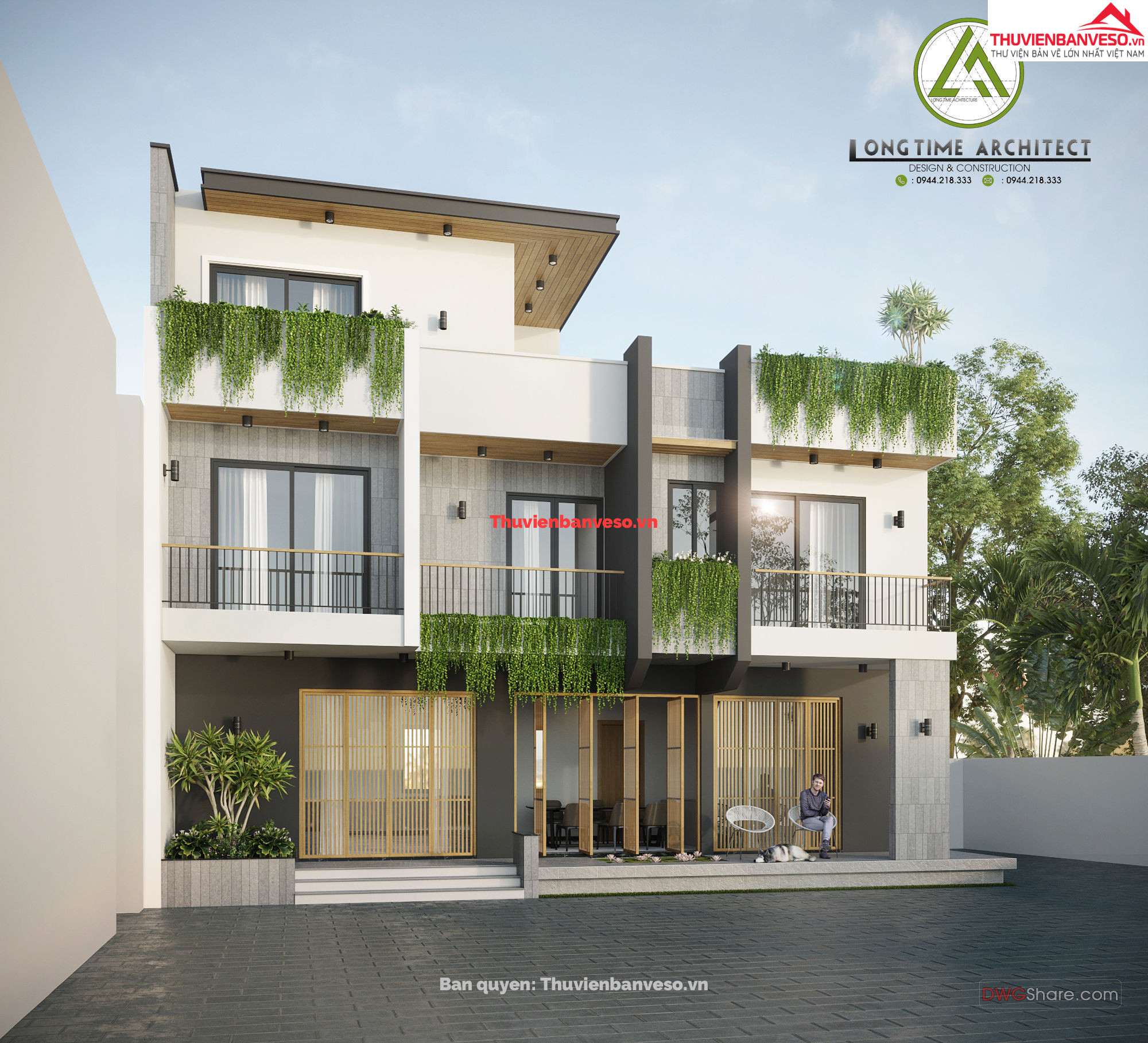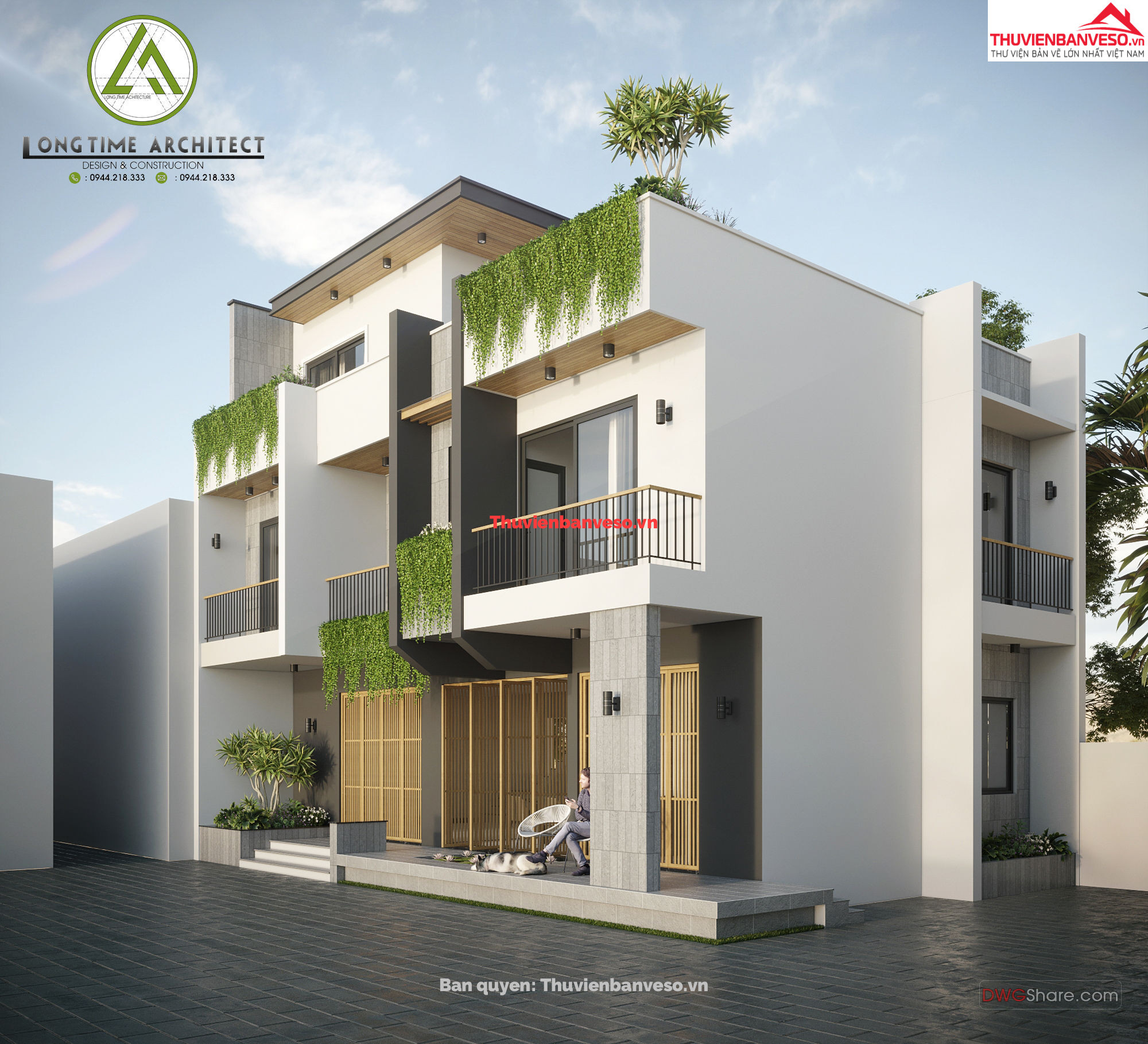 Bản vẽ kiến trúc nhà phố 3 tầng, kích thước 12.5x8.7m, thiết kế đẹp , sang trọng, story house