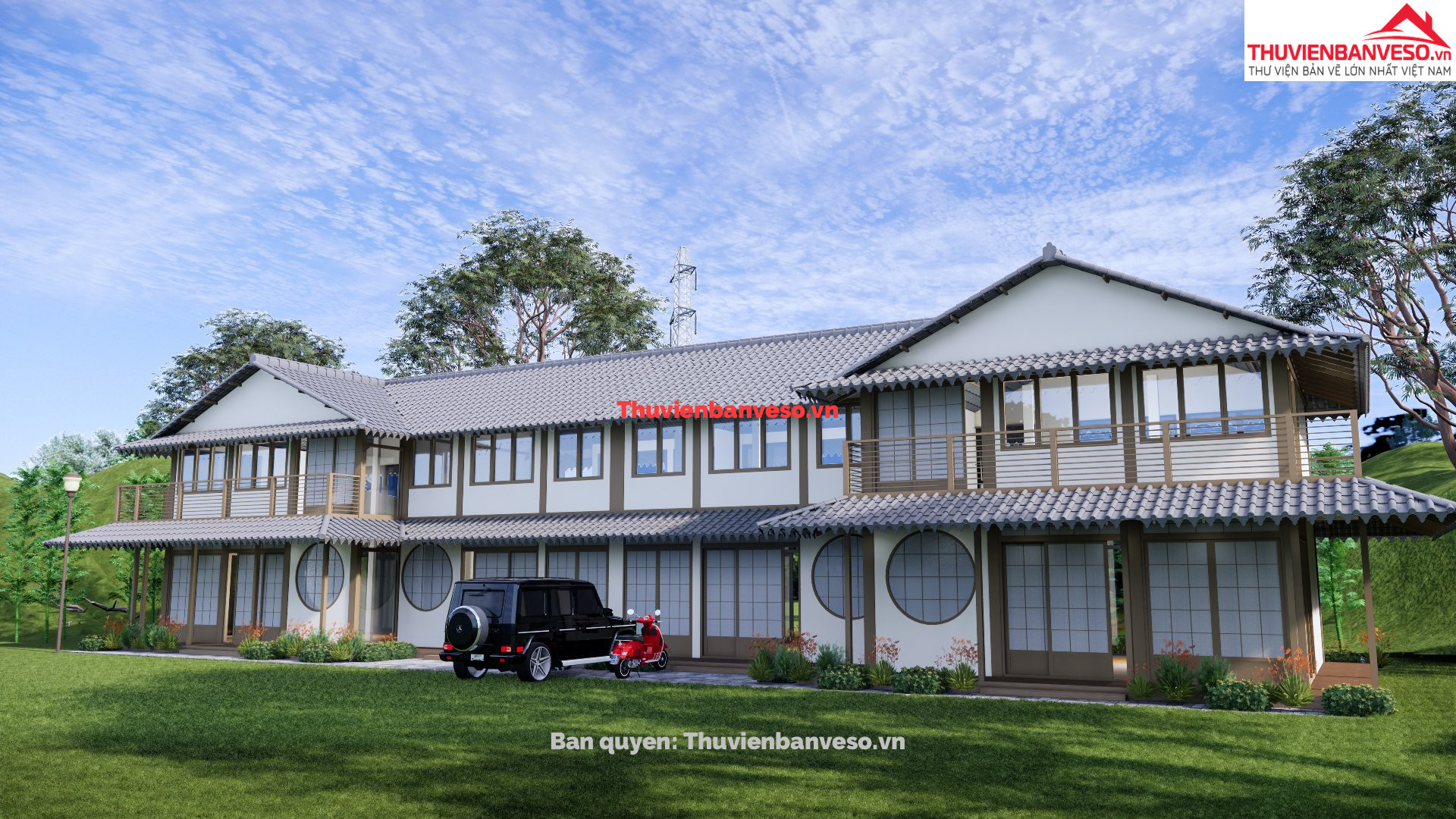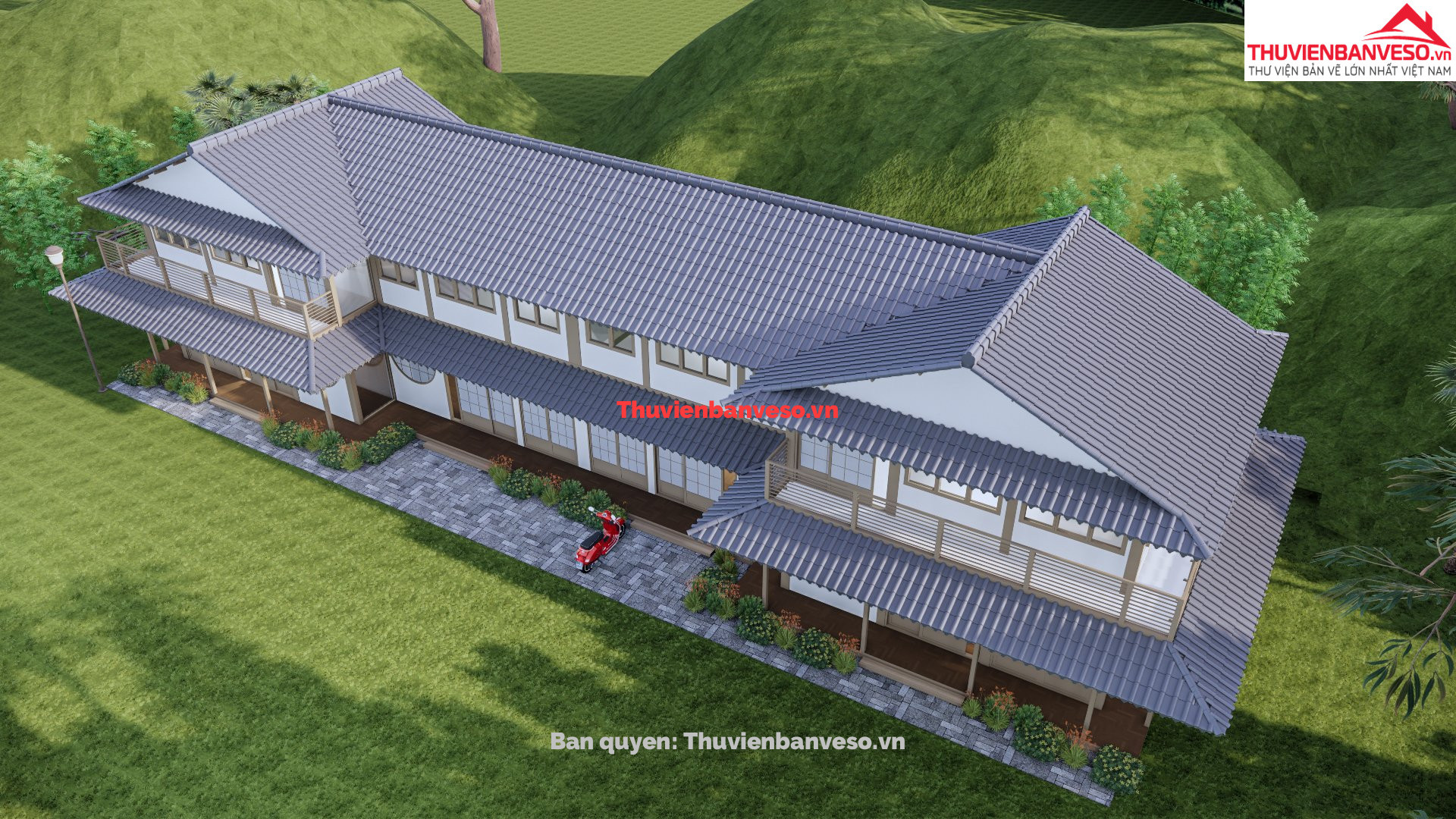 Bản vẽ phối cảnh nhà vườn Nhật Bản Thiết kế nhà phong cách Nhật Bản
