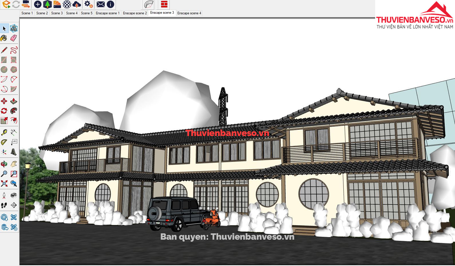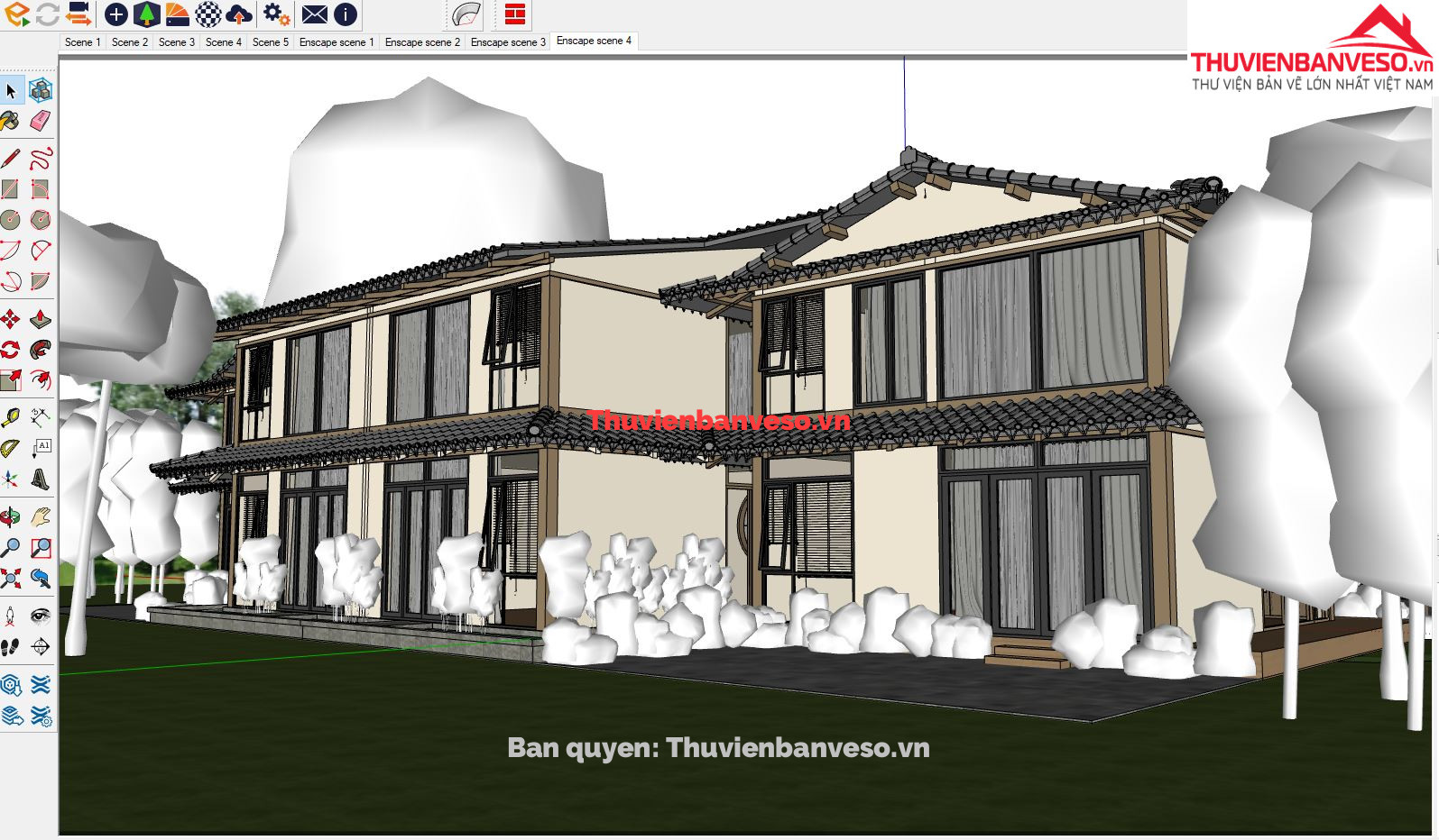 Bao gồm file SU Enscape, CAD kiến trúc & kết cấu, hình ảnh render phối cảnh
