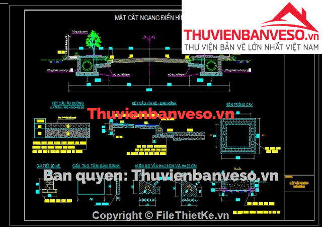 Có thể nói bản vẽ này thể hiện đầy đủ chi tiết nhất trong số Bản vẽ thiết kế điển hình đường đô thị có mặt cắt ngang B=12m đang được chia sẻ trong cộng đồng mạng. Rất có ích trong việc tham khảo trong quá trình thiết kế và học tập.