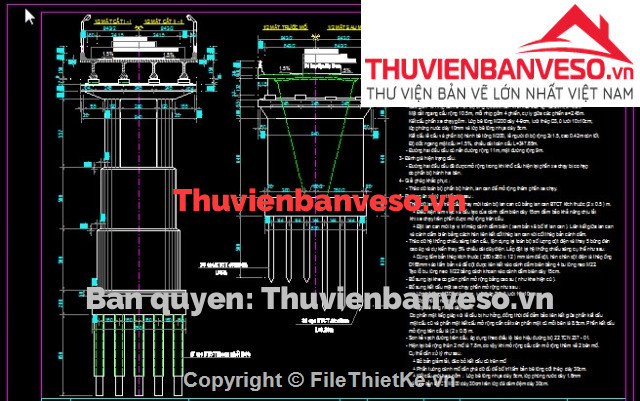 Bản vẽ cầu dầm bản 3 nhịp 24m khổ cầu 57m đầy đủ các hạng mục