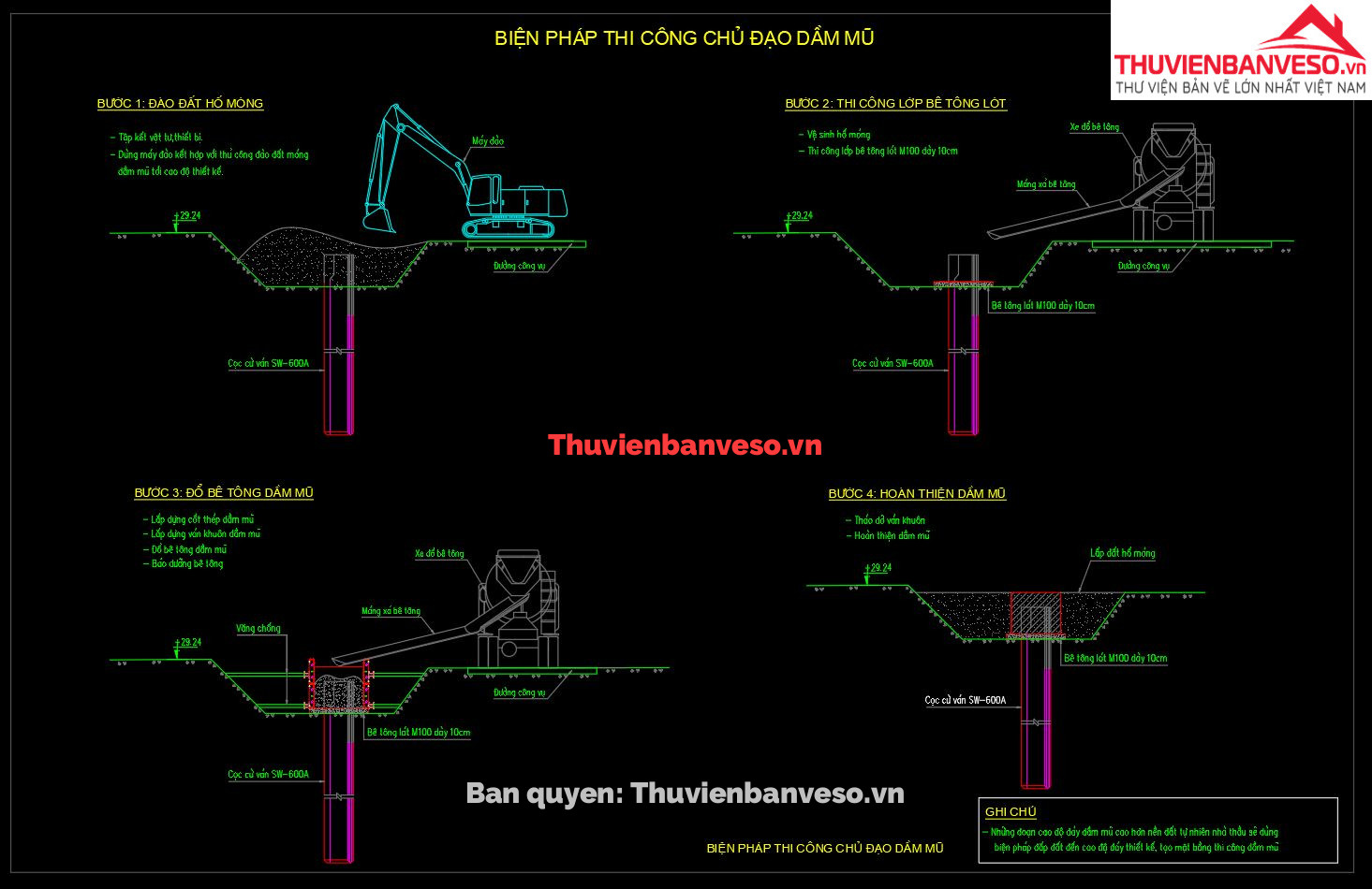 Biện pháp thi công phần ngầm (Full mẫu thuyết minh + bản vẽ DWG)