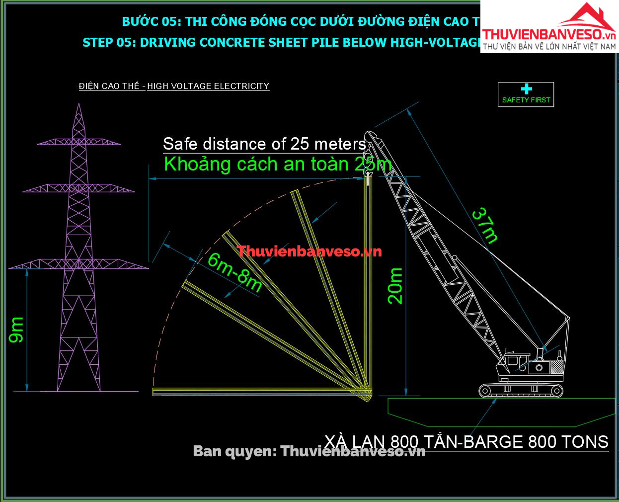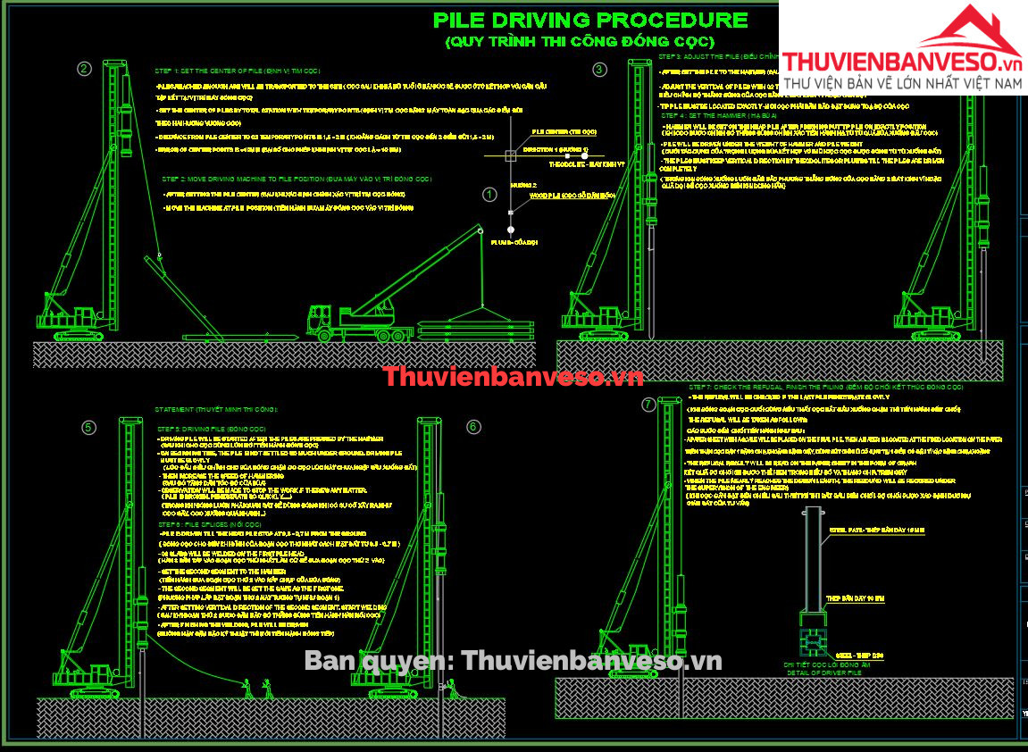 Biện pháp thi công đóng cọc ván dự ứng lực, thi công dầm mũ-full bản vẽ chi tiết