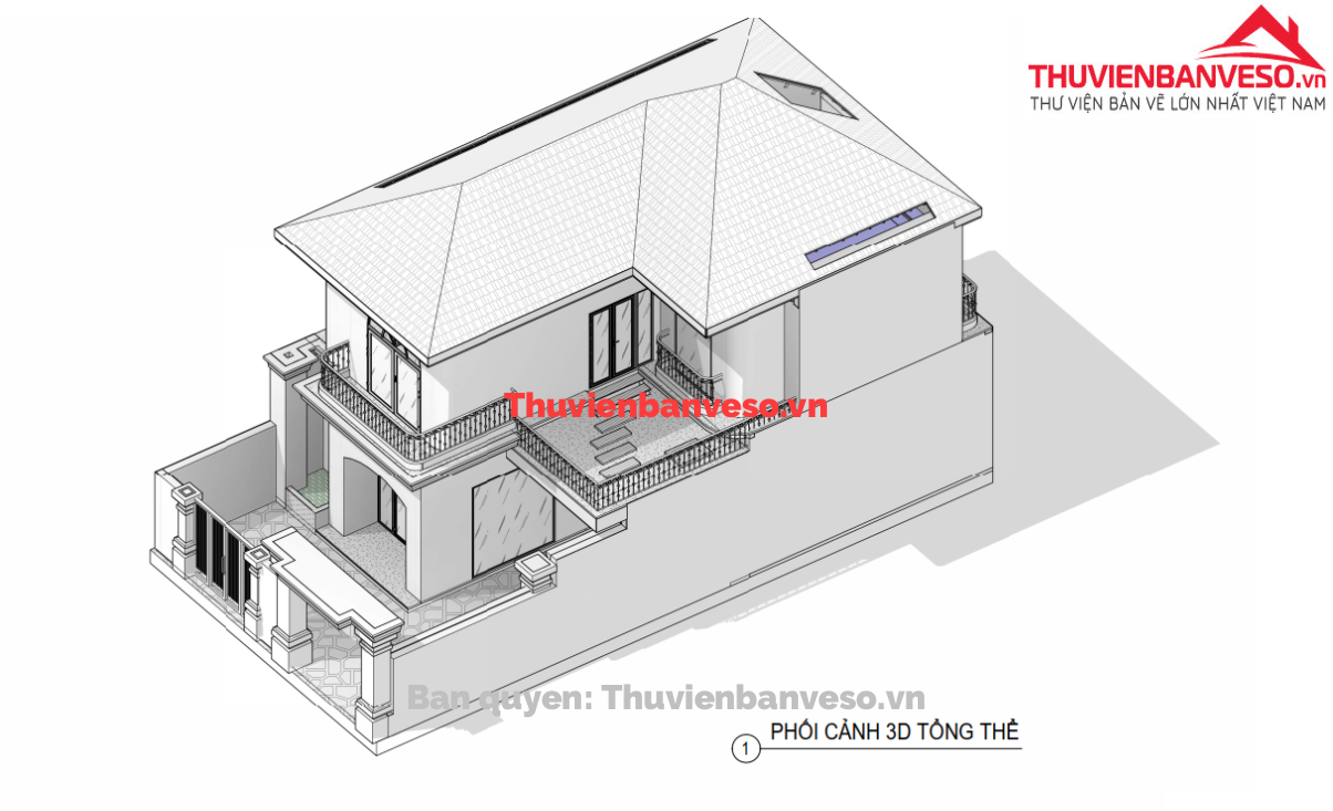 hồ sơ thiết kế kiến trúc Biệt thự 2 tầng mái nhật cực đẹp full phối cảnh