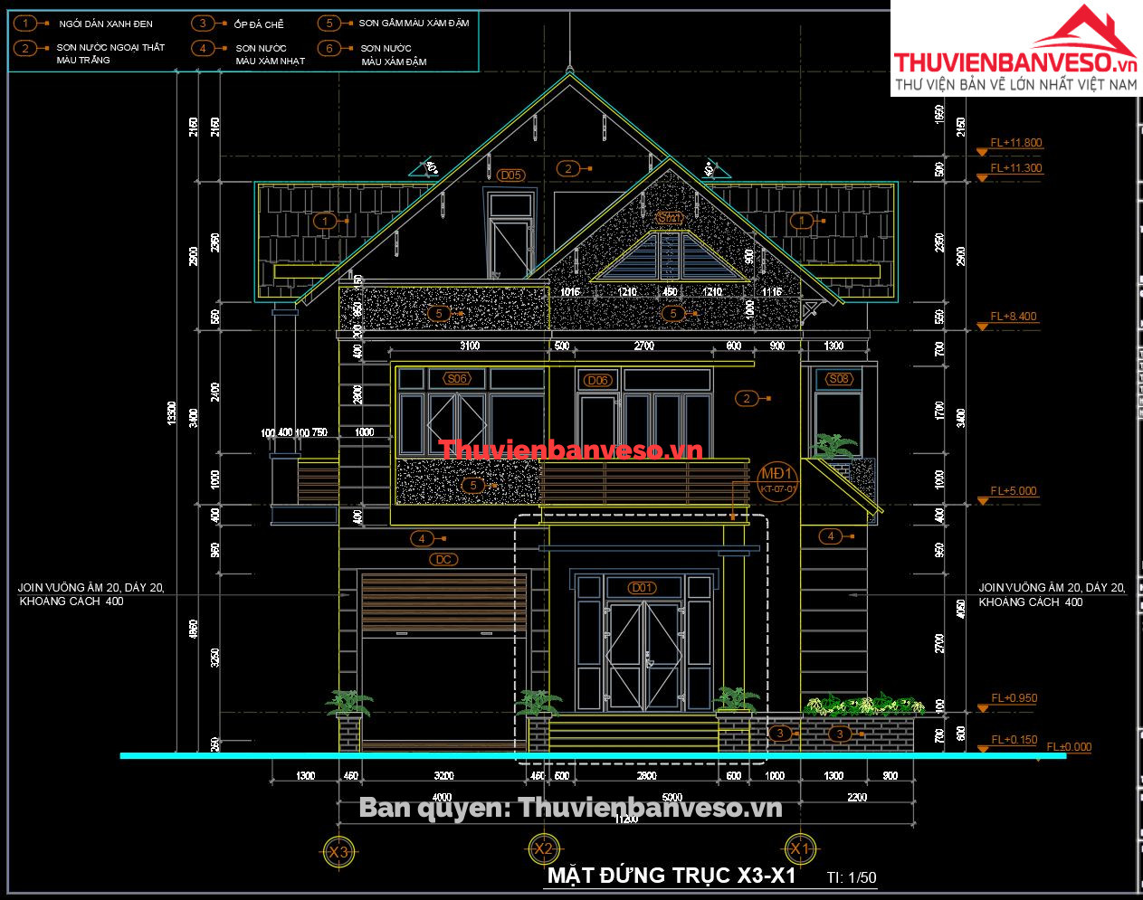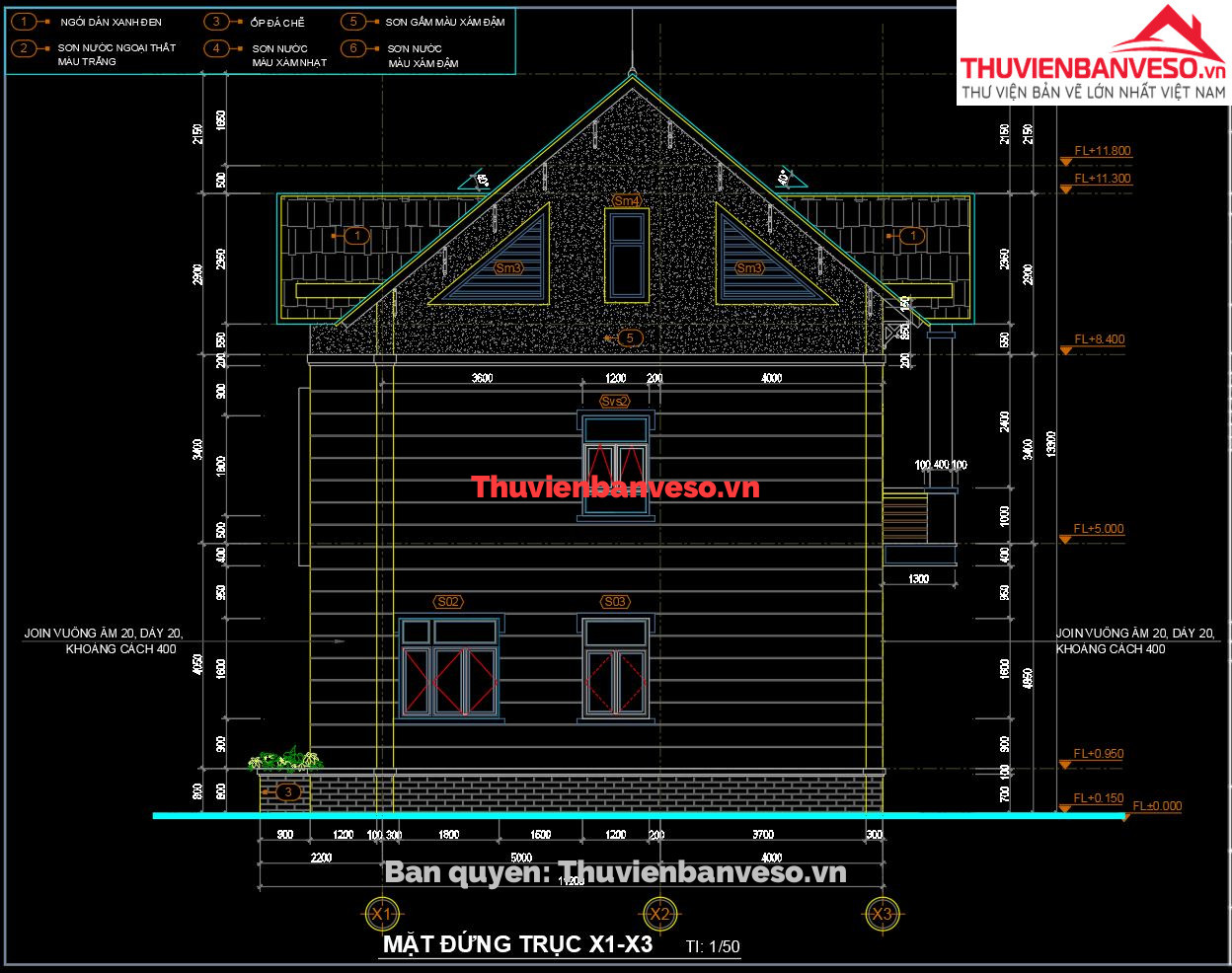 Biệt thự 3 tầng, 9x12.8m, đầy đủ bạn vẽ kiến trúc, kết cấu, điện nước.