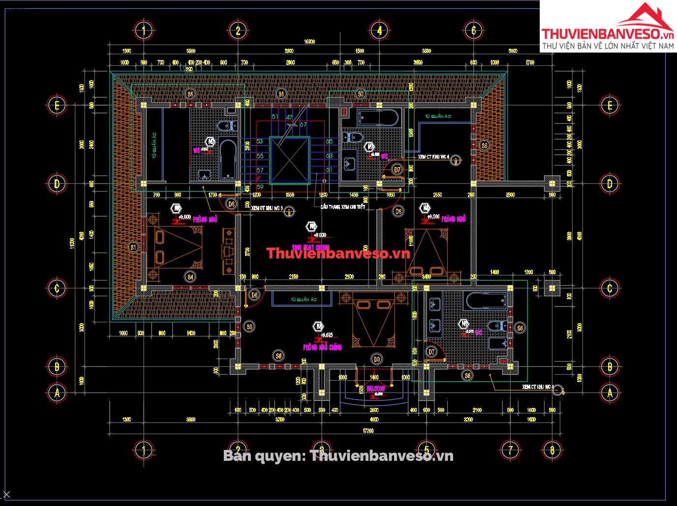 Bản vẽ nhà phố 3 tầng mái thái KT 6.5 x 17m full kiến trúc, dự toán