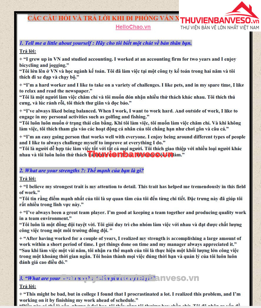 Các câu hỏi phỏng vấn tiếng anh khi đi xin việc làm