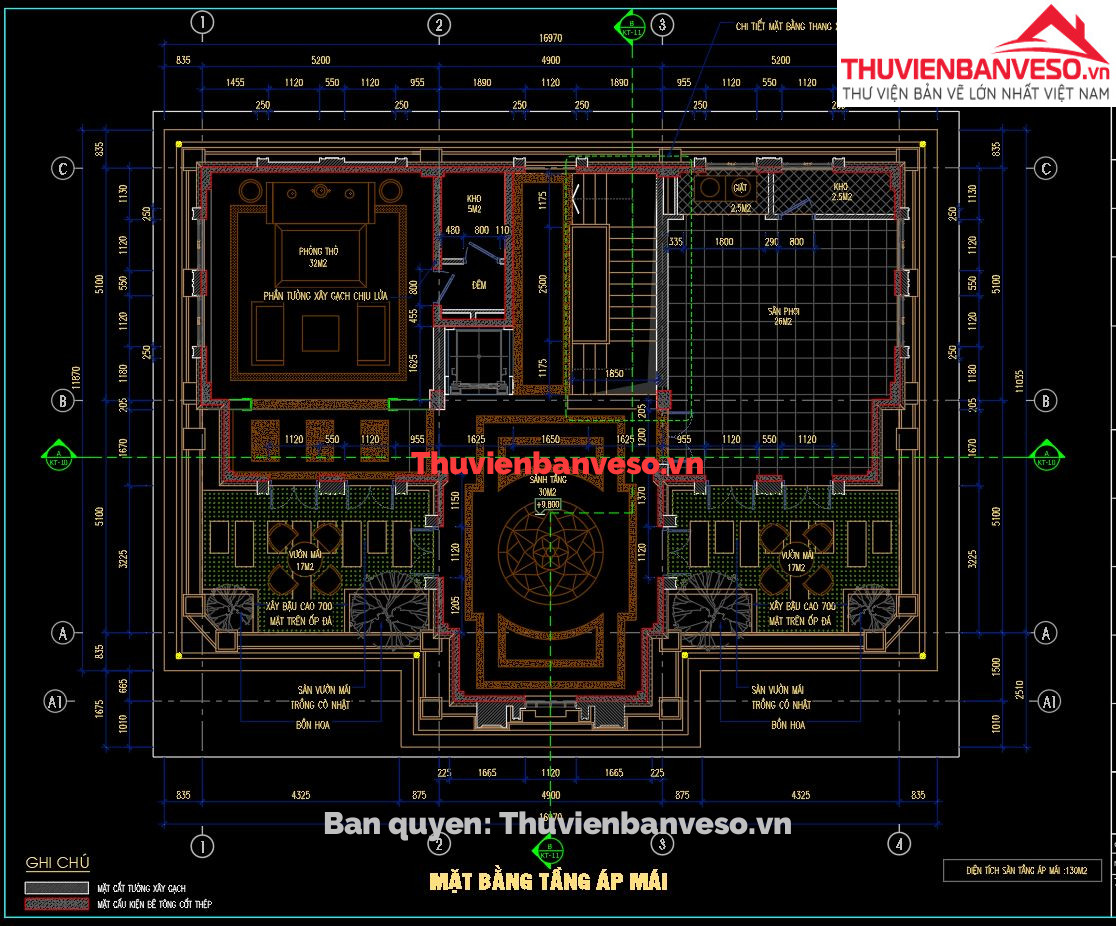Bản vẽ nhà phố 3 tầng mái thái KT 6.5 x 17m full kiến trúc, dự toán