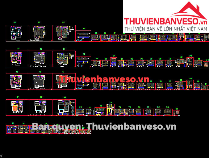 Hồ sơ bổ chi tiết nội thất biệt thự hiện đại (70 bản vẽ chi tiết)