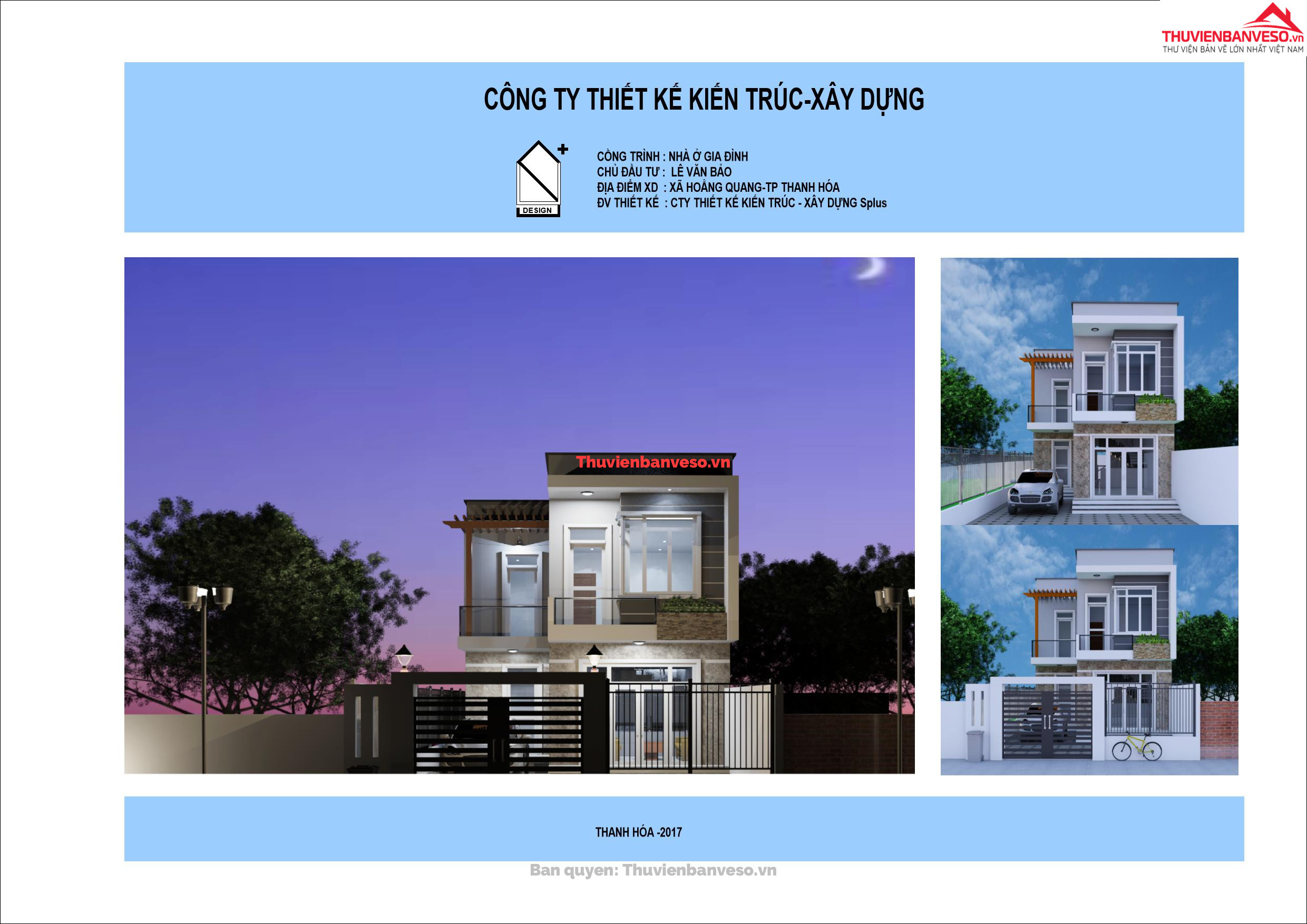 Bản vẽ nhà phố 3 tầng mái thái KT 6.5 x 17m full kiến trúc, dự toán