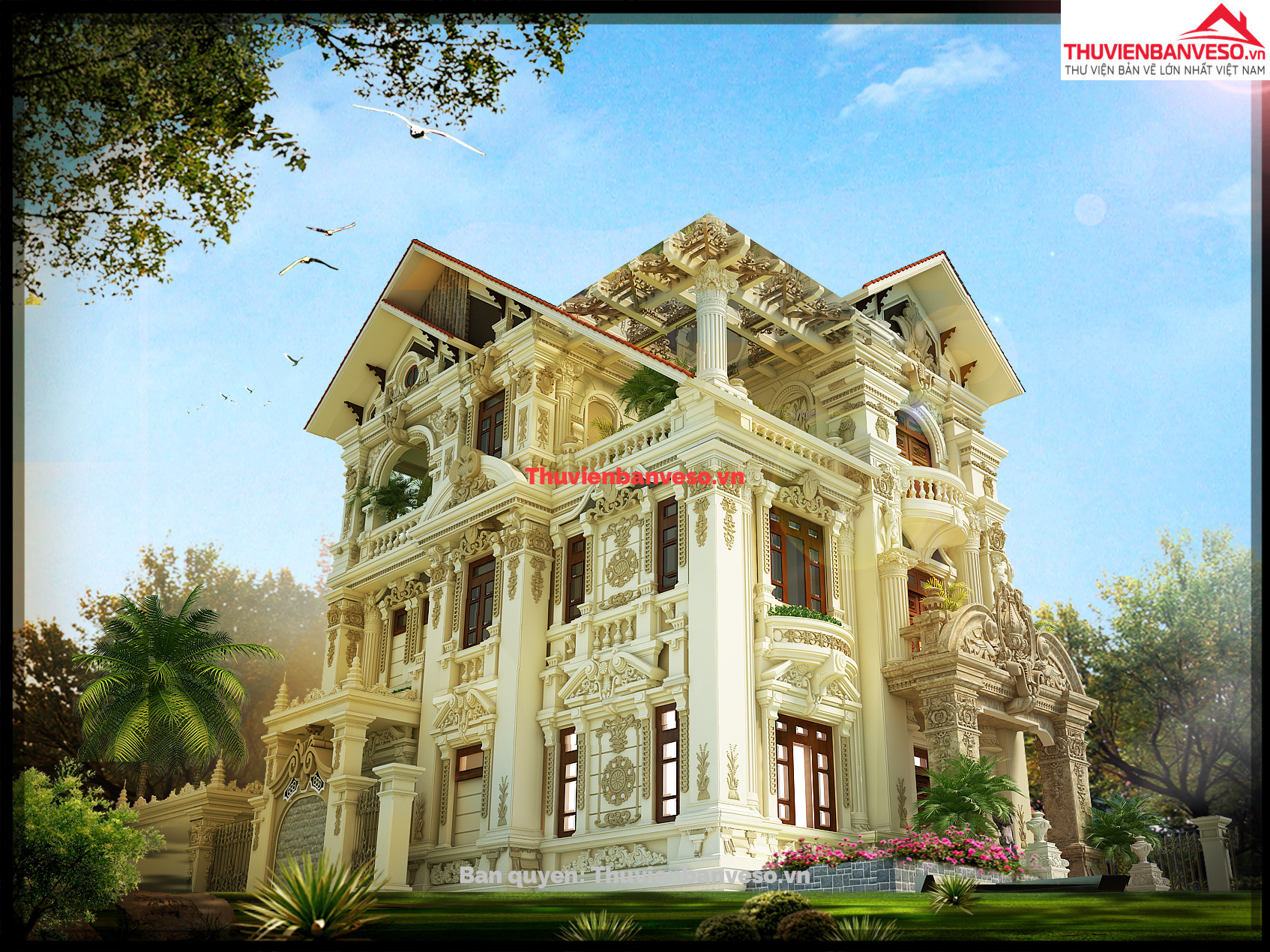HSKTTC biệt thự mái thái cổ điển 3 tầng kích thước 11.6x14.6m