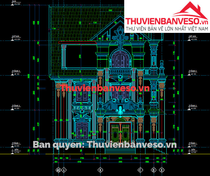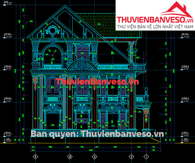Chia sẻ với các bạn bộ HSKTTC biệt thự mái thái cổ điển kích thước 11.6x14.6m