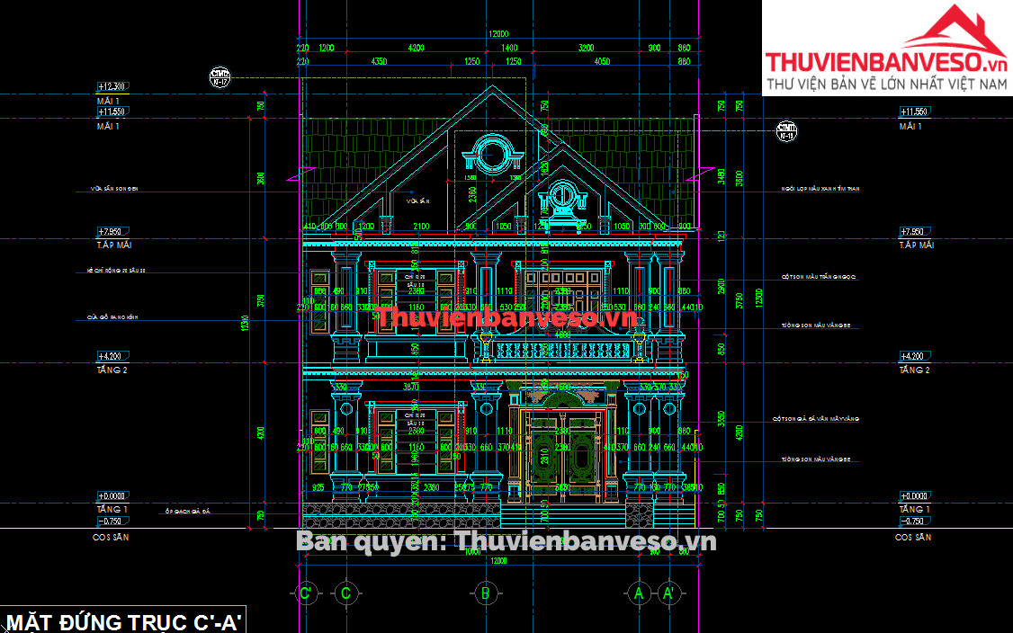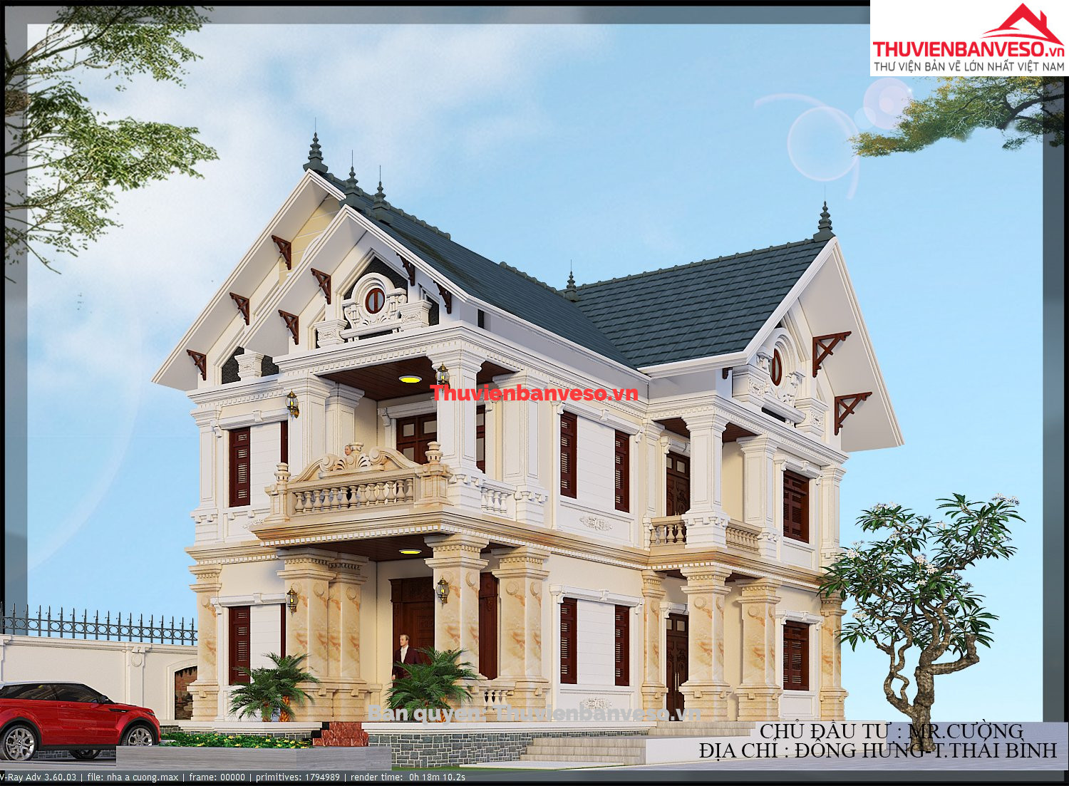 chia sẻ với các bạn file hồ sơ thiết kế kiến trúc biệt thự mái thái 2 tầng kích thước 11x14.5m