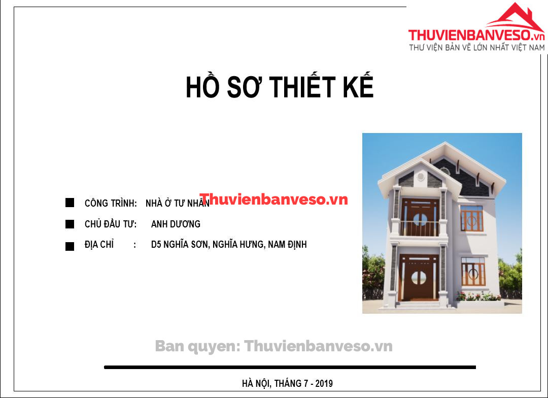 Bản vẽ TKTC nhà 2 tầng mái thái kích thước 8x10m. full bản vẽ kiến trúc+ phối cảnh