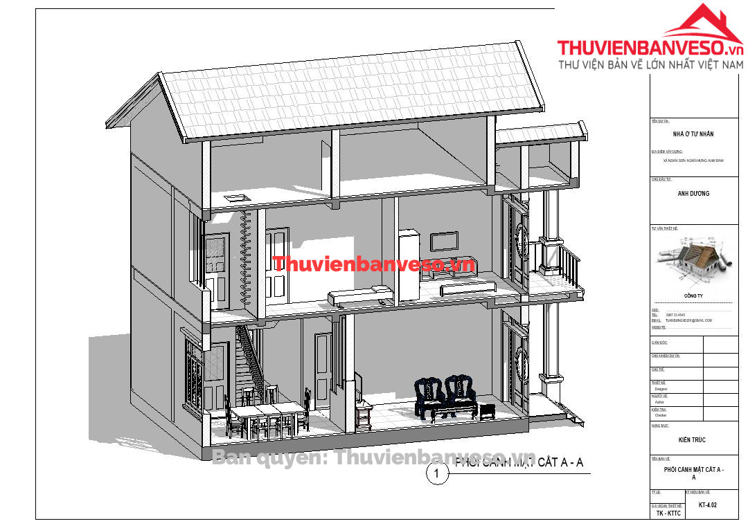 Bản vẽ nhà phố 3 tầng mái thái KT 6.5 x 17m full kiến trúc, dự toán