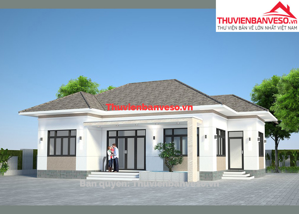 Nhà 1 trệt mái ngói gồm 3 phòng ngủ, 1 phòng thờ, 1 phòng khách, bếp ăn có đầy đủ phối cảnh, bản vẽ kiến trúc, kết cấu và điện nước thi công.