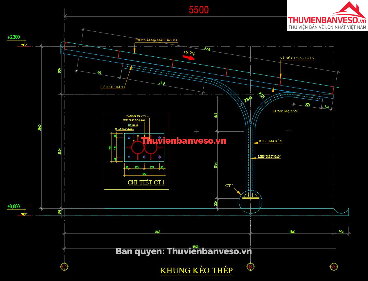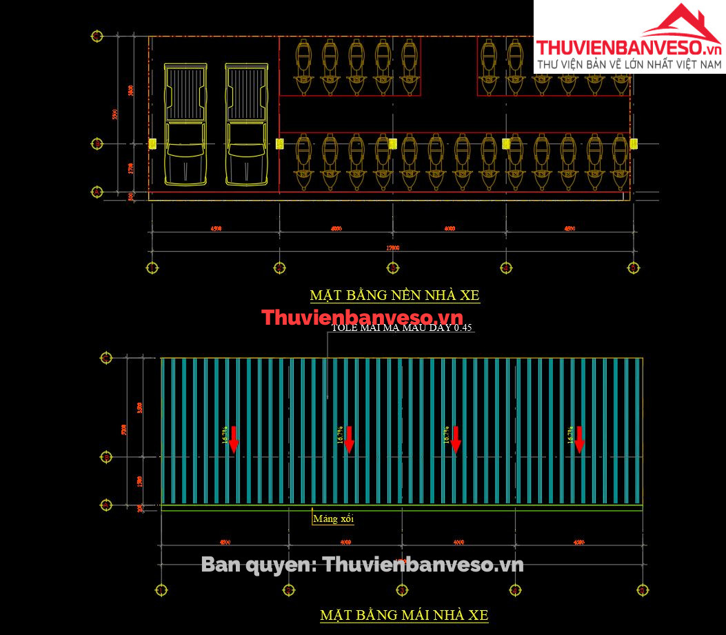 Nhà để xe máy 5.5x17m, full kiến trúc, kết cấu