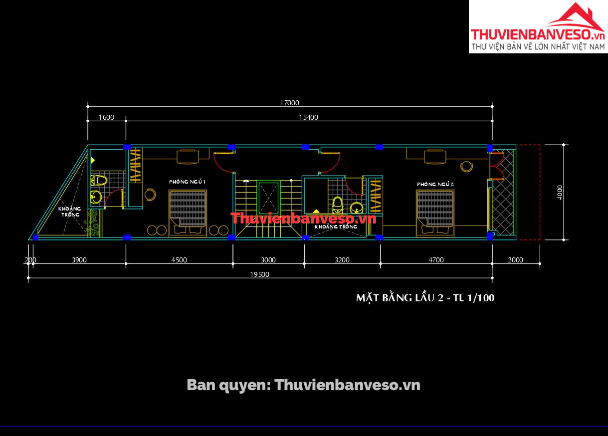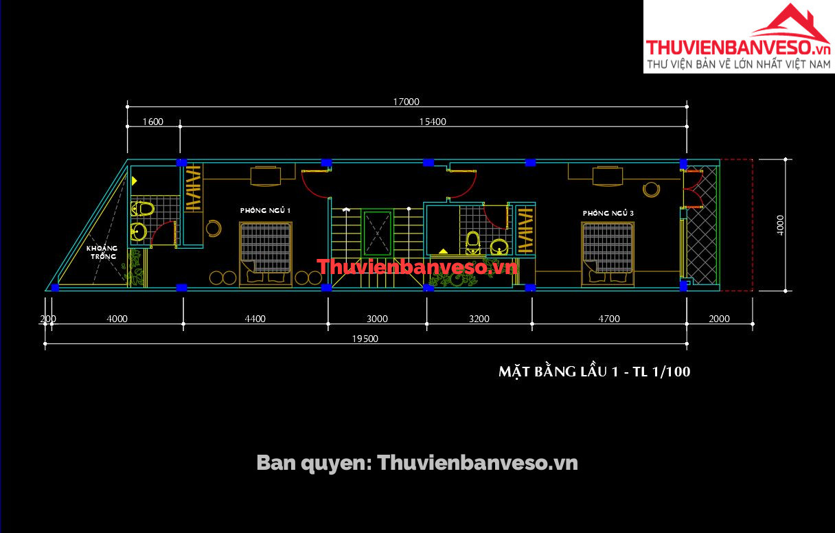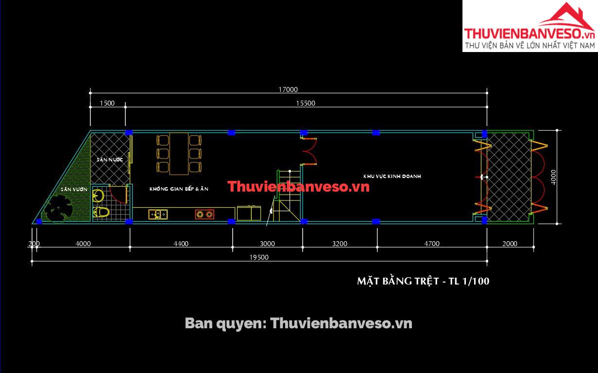 Bản vẽ nhà cấp 4 kích thước 9.6x22m full kiến trúc, kết cấu