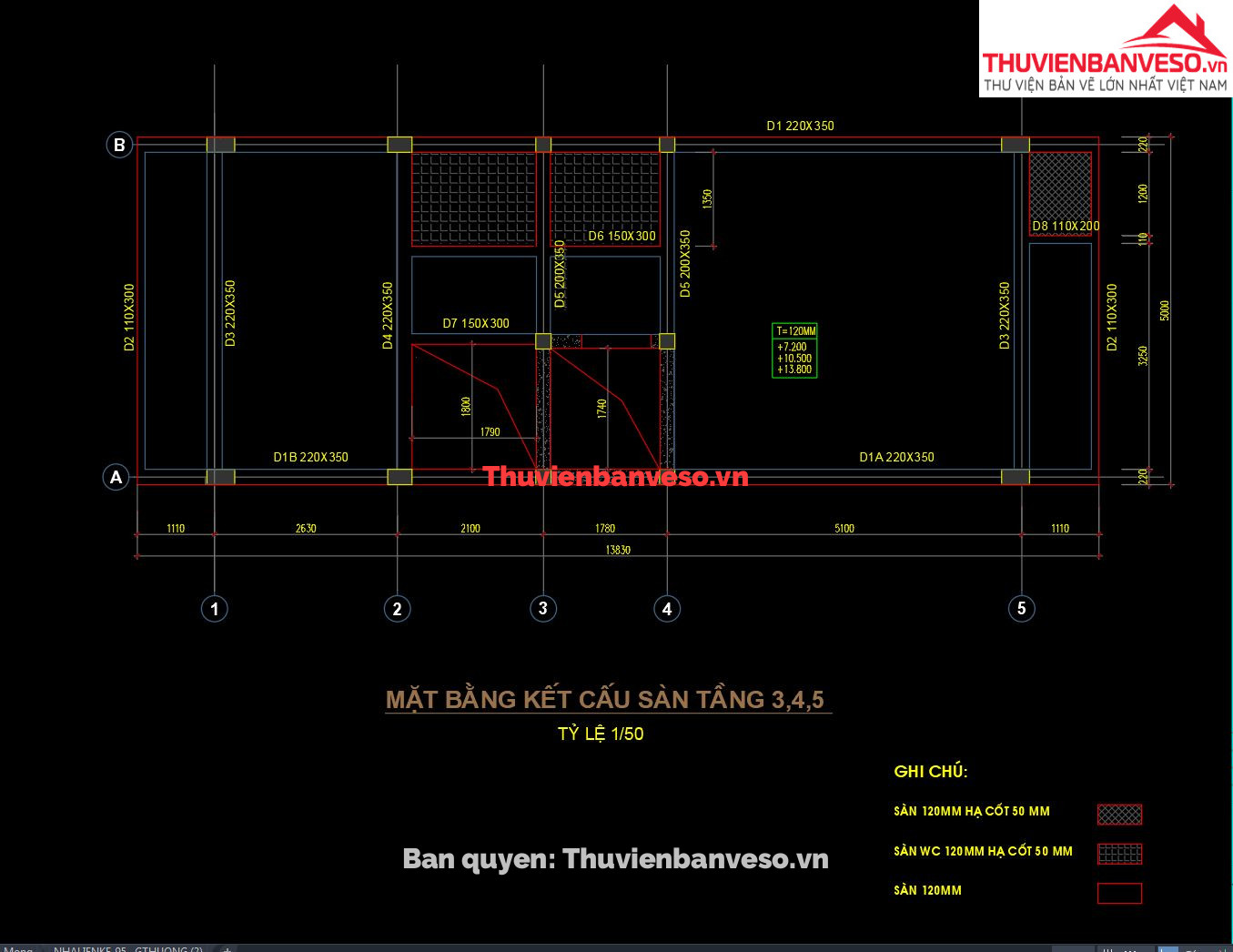 Bản vẽ nhà liền kề goldsilk complex 5x15m cao 5 tầng full kiến trúc, kết cấu (có phối cảnh)