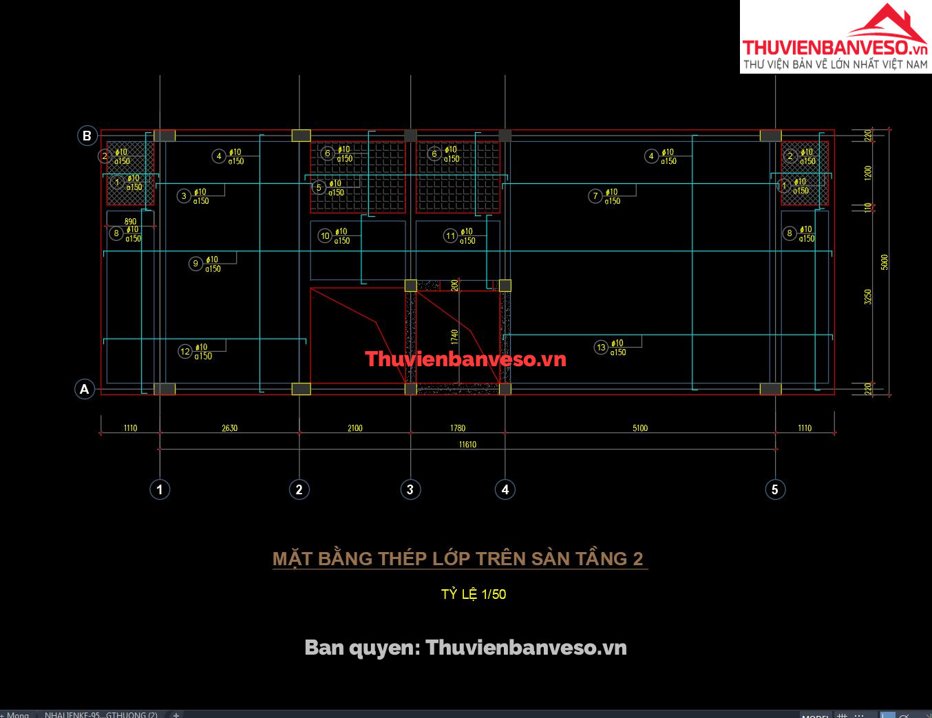Bản vẽ nhà cấp 4 kích thước 9.6x22m full kiến trúc, kết cấu