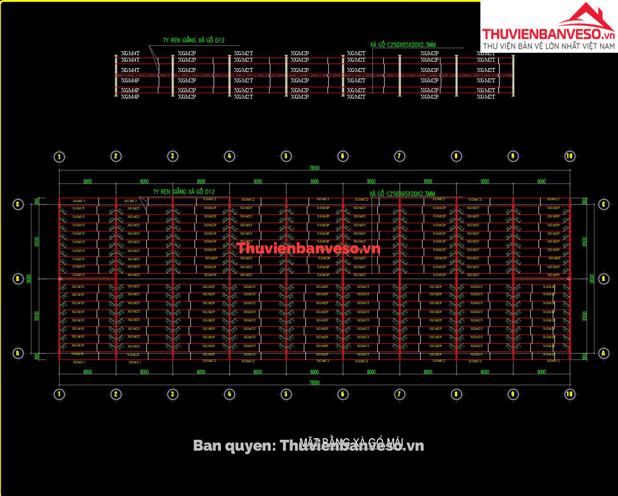 Bản vẽ nhà xưởng 1 tầng, chiều rộng 21m không cột giữa, chiều dài 72m, chiều cao giọt nước 5m