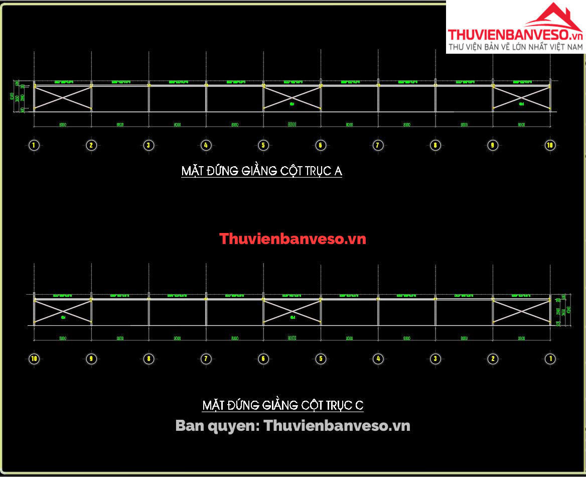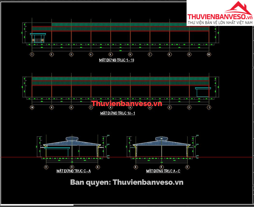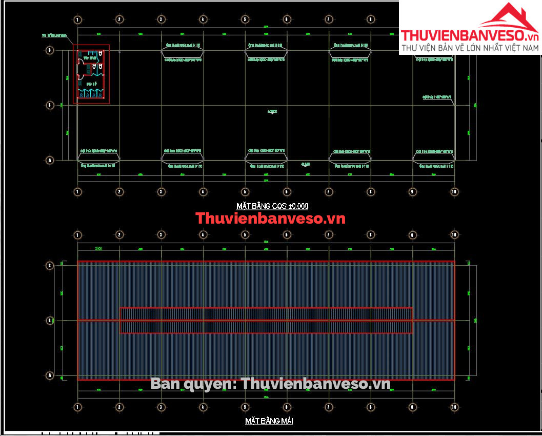 Nhà xưởng 1 tầng, kích thước 21x72m, không cột giữa, đầy đủ bản vẽ kiến trúc, kết cấu