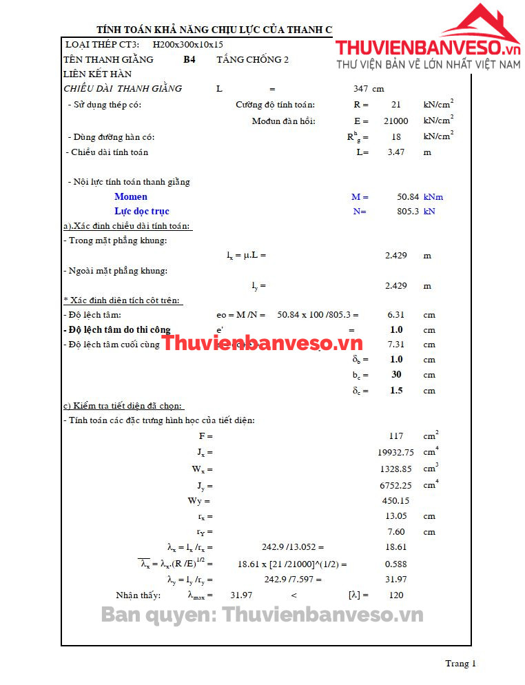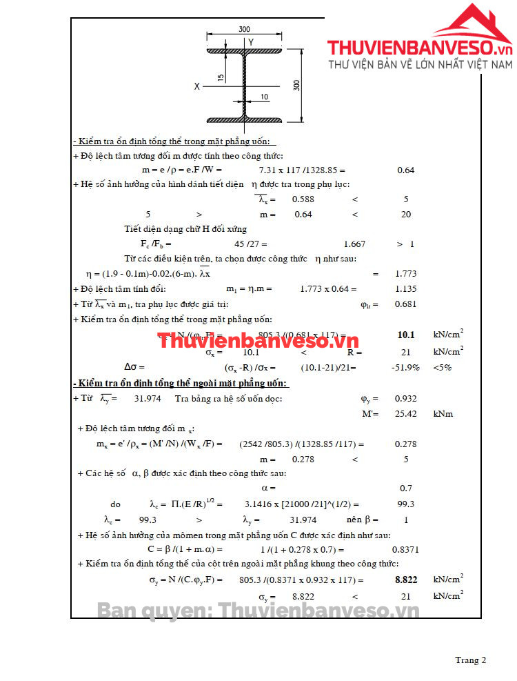 Tính toán khả năng chịu lực của thanh chống H300X300X10X15