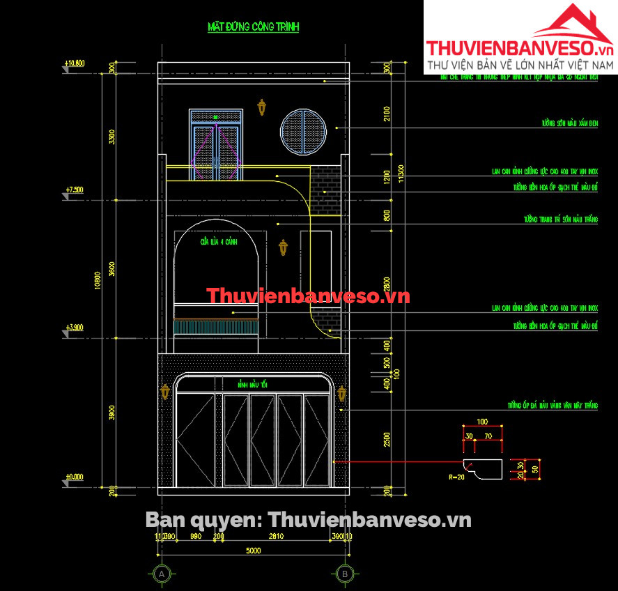 Bản vẽ nhà liền kề goldsilk complex 5x15m cao 5 tầng full kiến trúc, kết cấu (có phối cảnh)