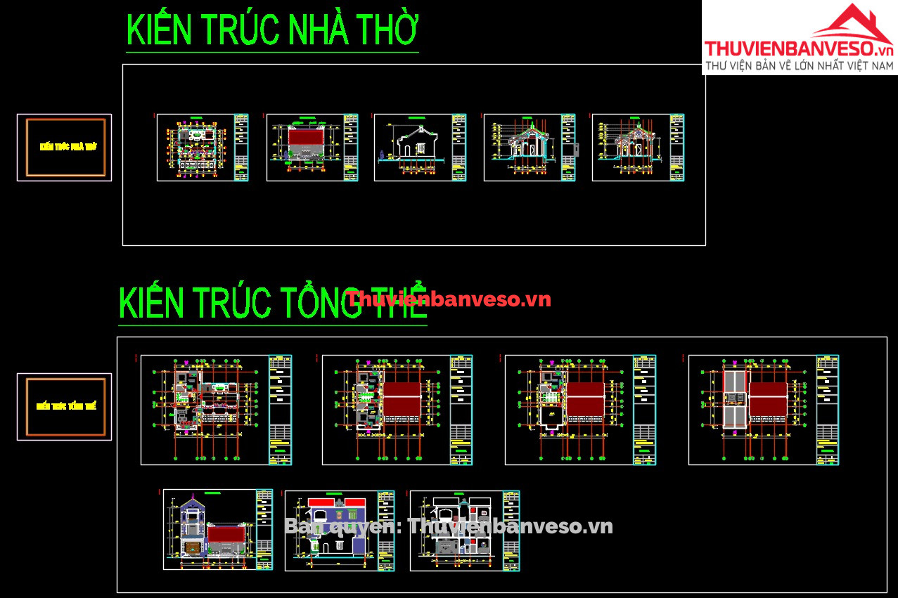 Bản vẽ nhà thờ 5 gian kích thước 6x15m (full kiến trúc, KC, Điện)