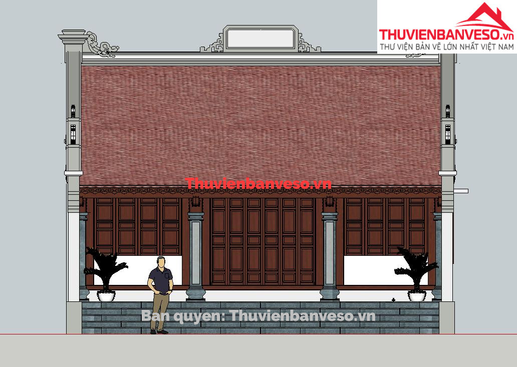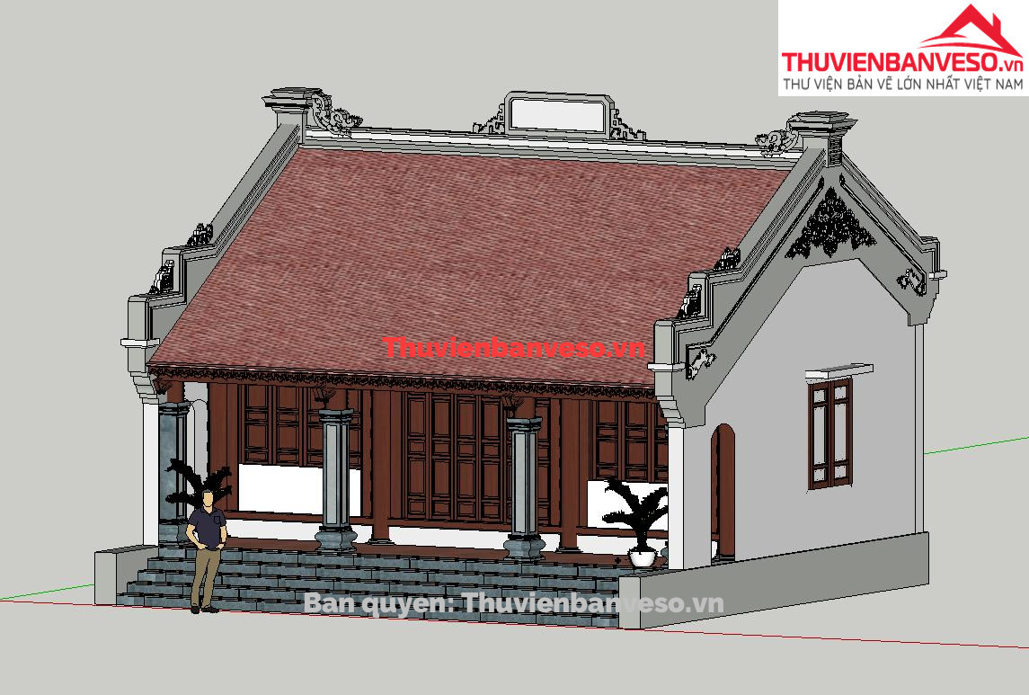 - Nhà thờ 3 gian: 7,43mx6,17m (Kiến trúc + Phối cảnh 3d Sketchup nhà thờ)
