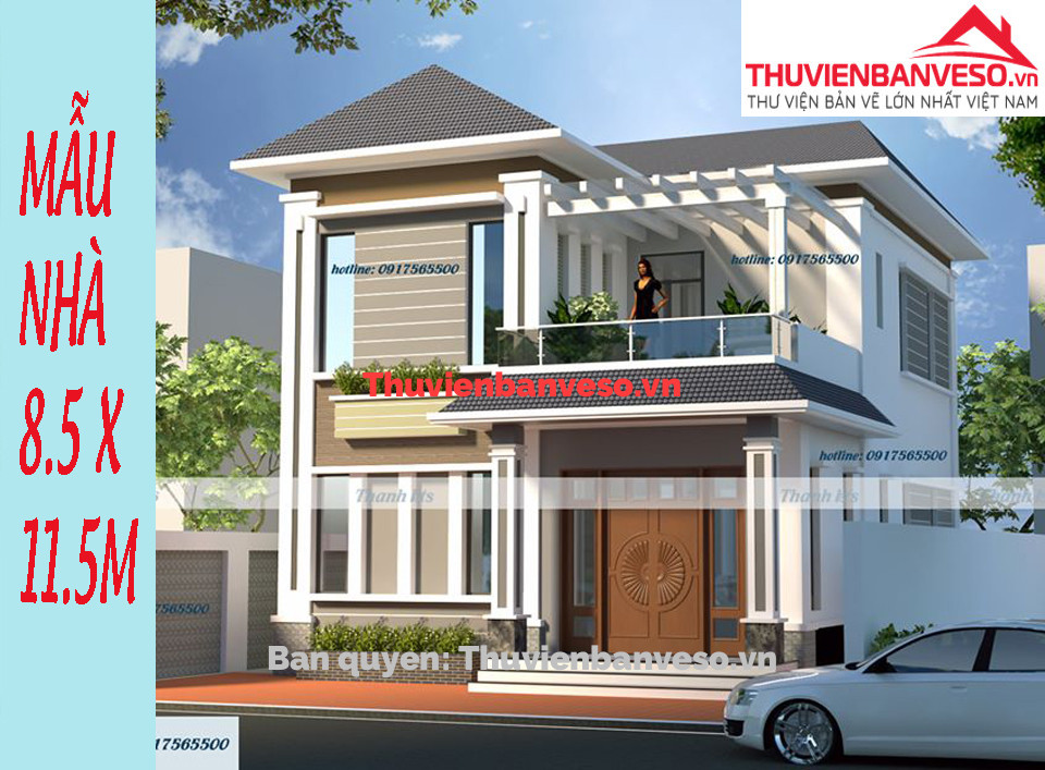 Bản vẽ biệt thự 2 tầng 8.5x11.5m (full kiến trúc, kết cấu. file cad và sketchup)