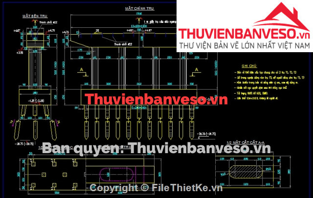 Có thể nói tập bản vẽ này đầy đủ nhất trong số tập bản vẽ cầu dầm bản 4 nhịp 12m đang được chia sẻ trong cộng đồng mạng. Không những có ích trong việc tham khảo trong quá trình thiết kế và học tập mà còn có thể sử dụng đưa vào thi công nếu được chủ đầu tư đồng ý.