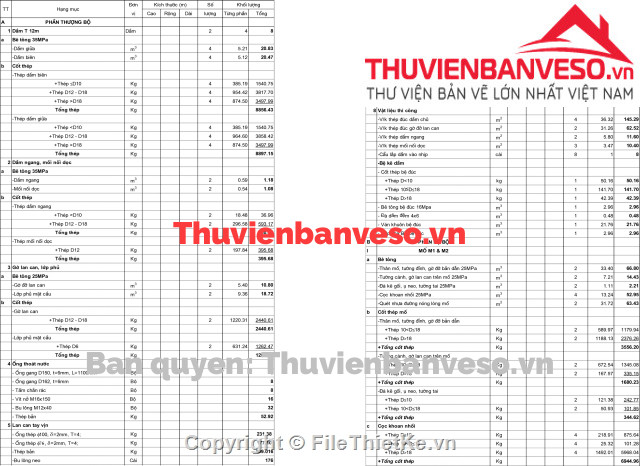 7-Khối lượng : Bao gồm bảng khối lượng toàn cầu, tiến độ thi công...;