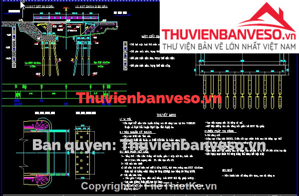 Bản vẽ cầu dầm bản 3 nhịp 24m khổ cầu 57m đầy đủ các hạng mục