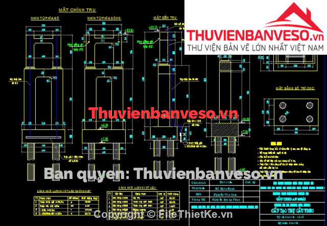 3-Kết cấu phần dưới: Bao gồm cấu tạo mố, trụ tháp, bố trí cốt thép mố, trụ tháp, bản quá độ, cọc khoan nhồi D1m, tứ nón...;