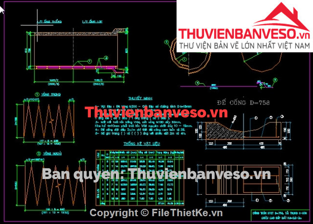 Có thể nói tập bản vẽ này đầy đủ nhất trong số tập Bản vẽ chi tiết cốt thép ống cống tròn BTCT D758, tải trọng A, B, C, D, chiều dài L=1, 2, 4m đang được chia sẻ trong cộng đồng mạng. Không những có ích trong việc tham khảo trong quá trình thiết kế và học tập mà còn có thể sử dụng đưa vào thi công nếu được chủ đầu tư đồng ý.