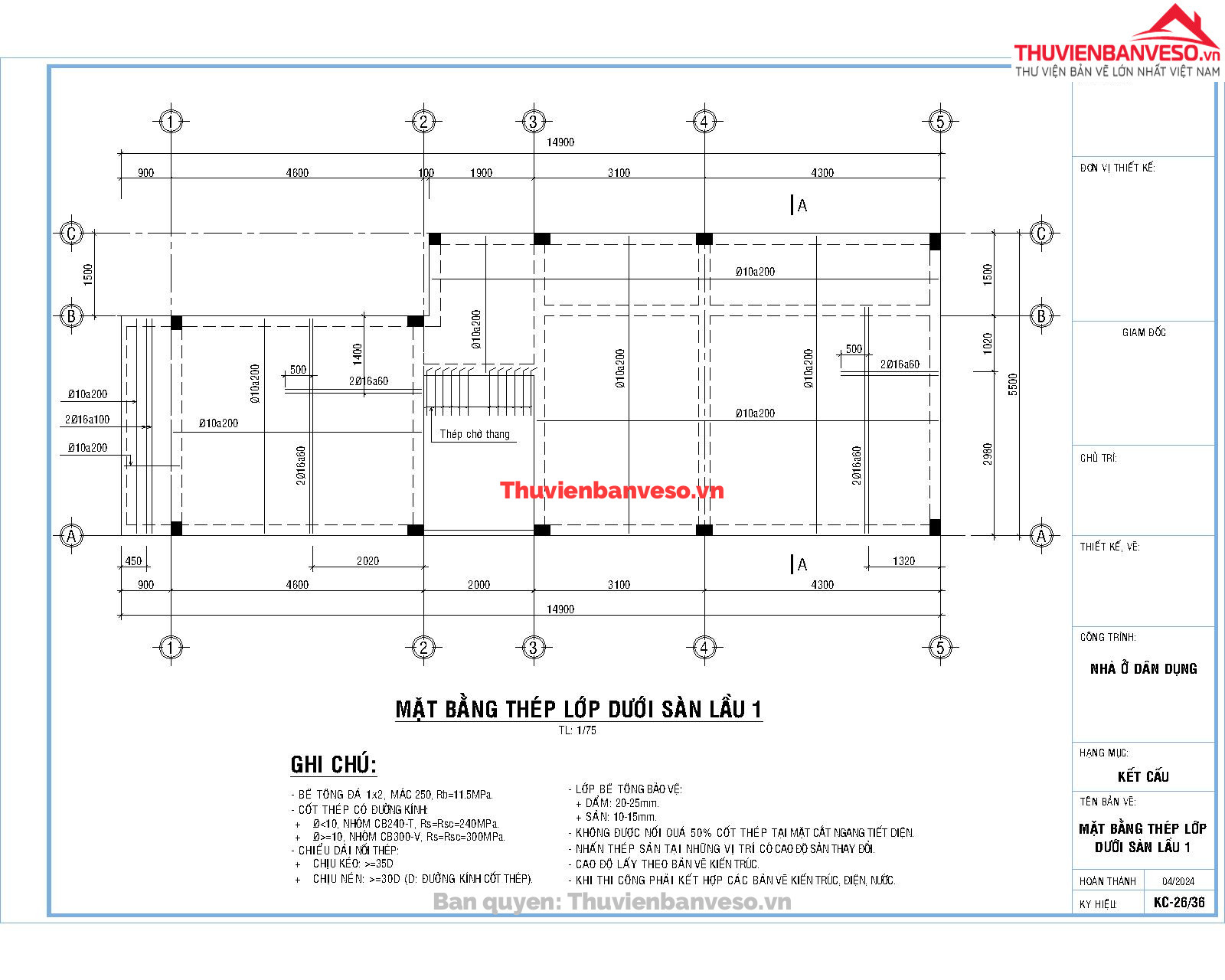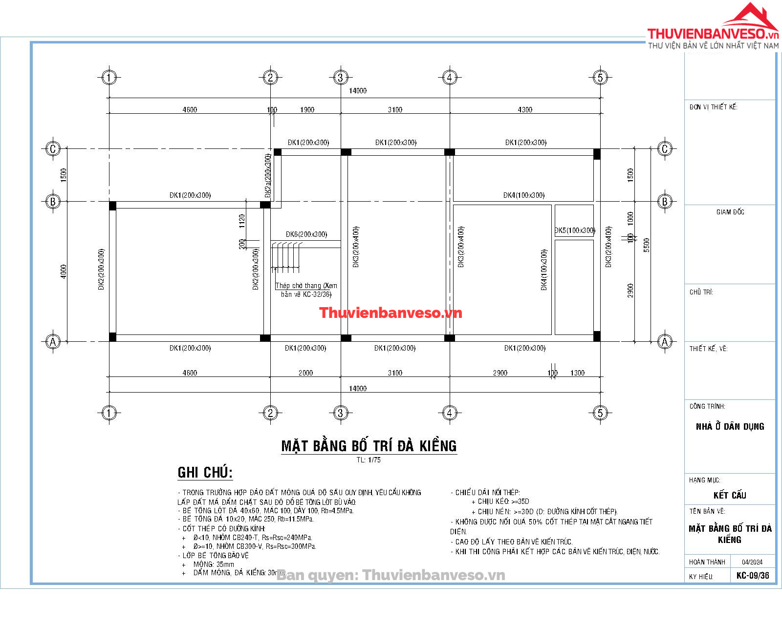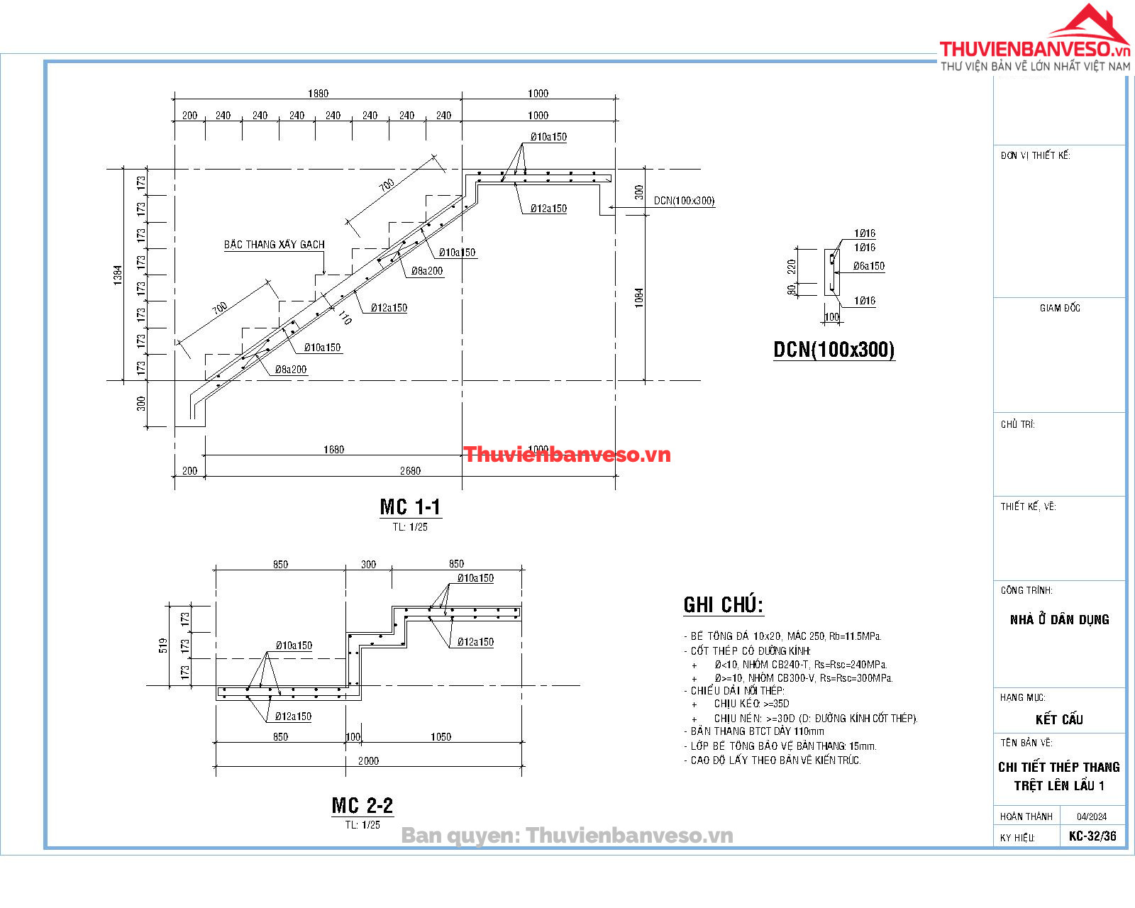 Bản vẽ nhà cấp 4 kích thước 9.6x22m full kiến trúc, kết cấu