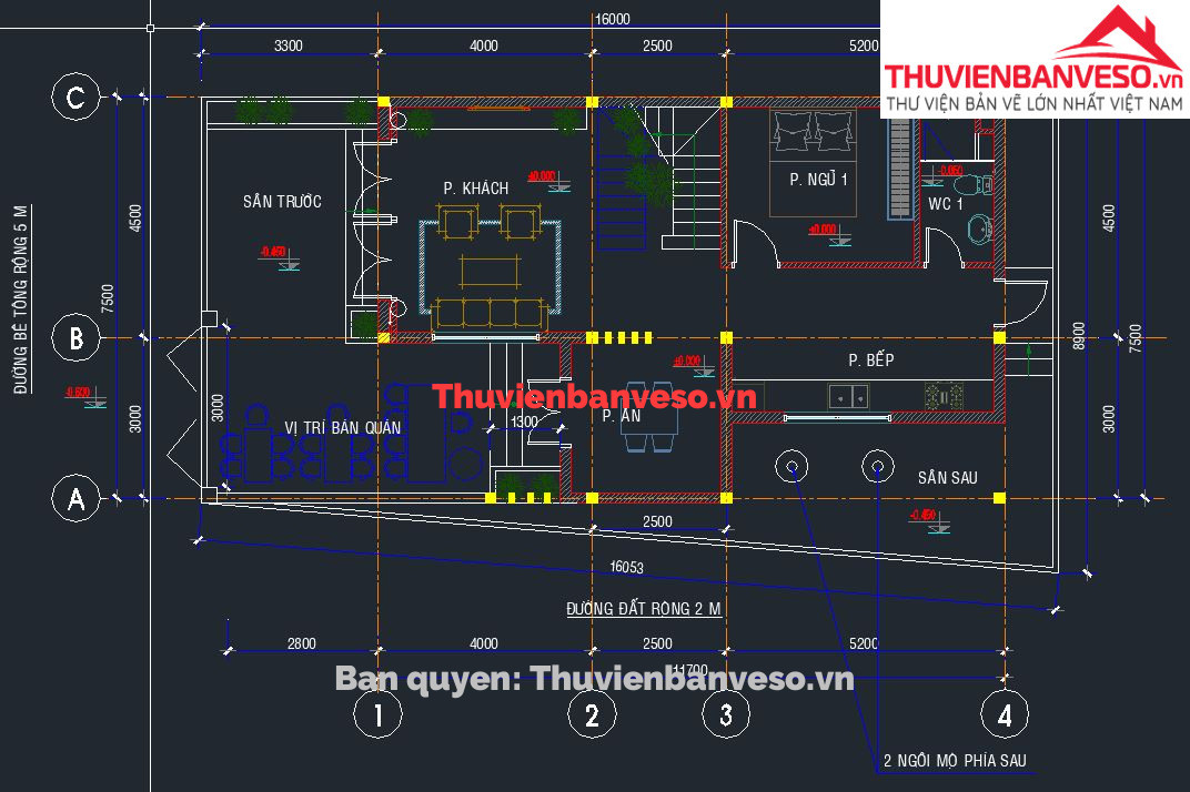 Bản vẽ nhà phố 2 mặt tiền full hồ sơ thi công kiến trúc nội thất