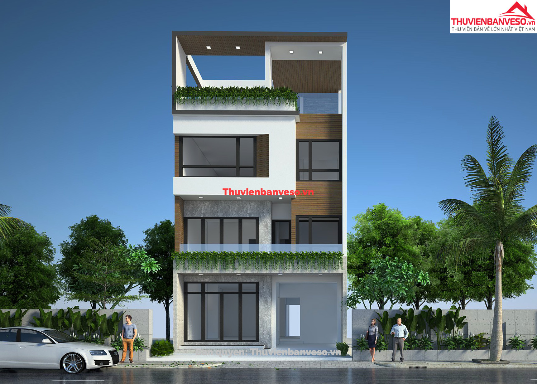 Bản vẽ nhà phố 4 tầng 8x20m (full hồ sơ thi công kiến trúc, kết cấu, điện nước)
