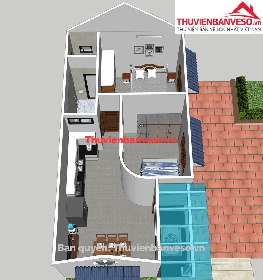 Bản vẽ (pdf + autocad + 3d sketchup) nhà cấp 4 mái Thái
