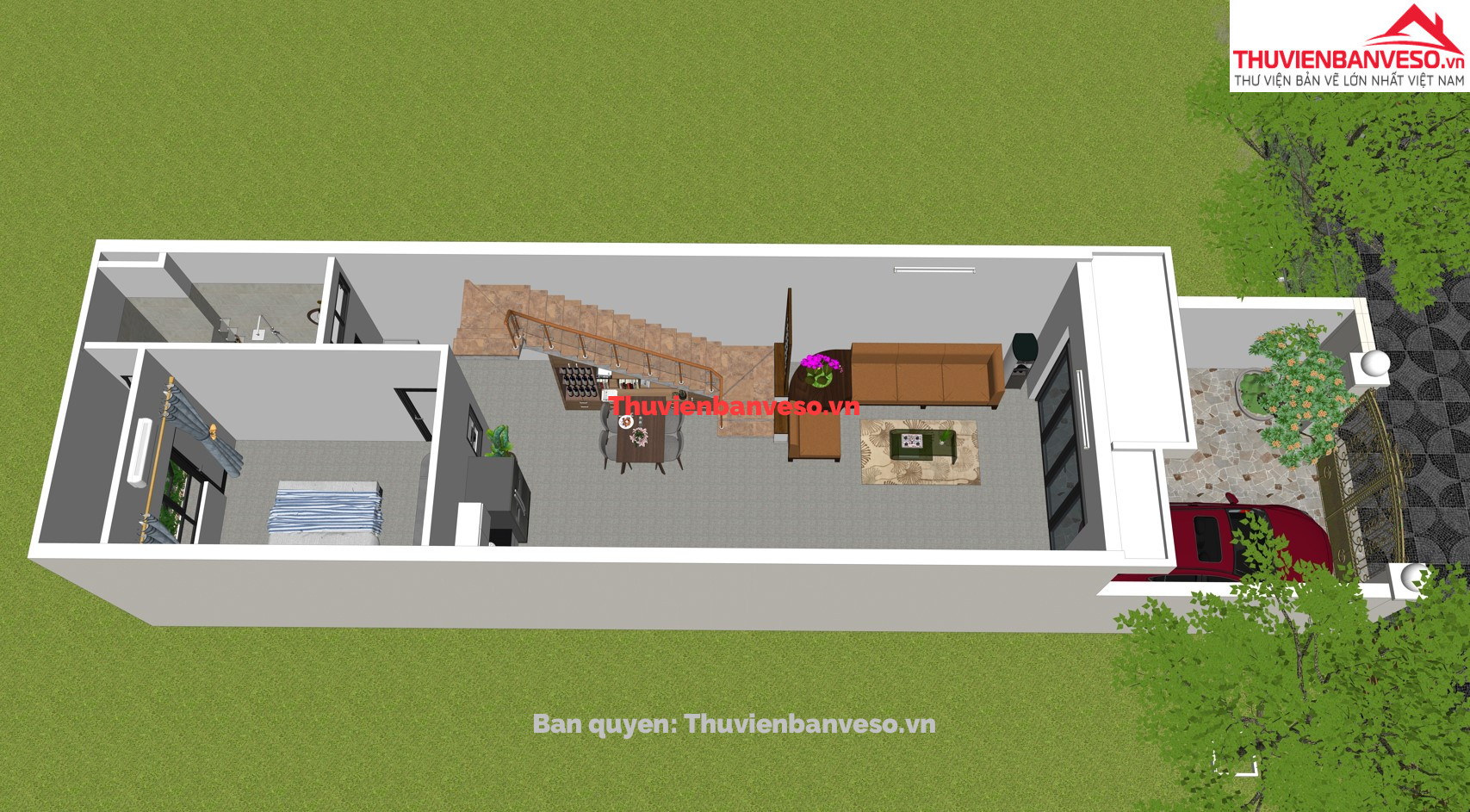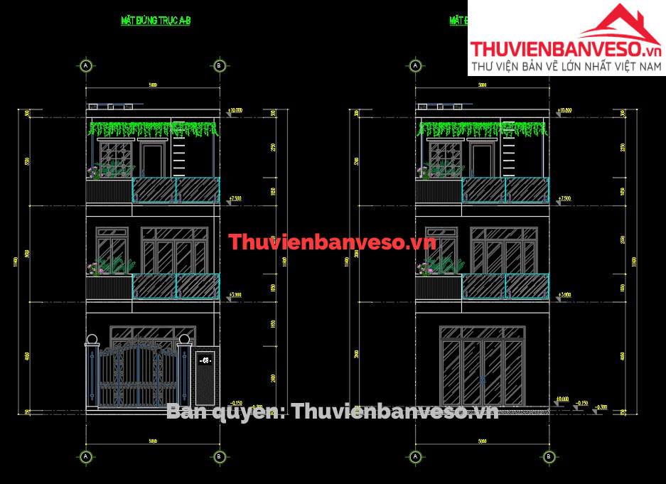 Bản vẽ (pdf + autocad + 3d sketchup) nhà phố 3 tầng 5x20m