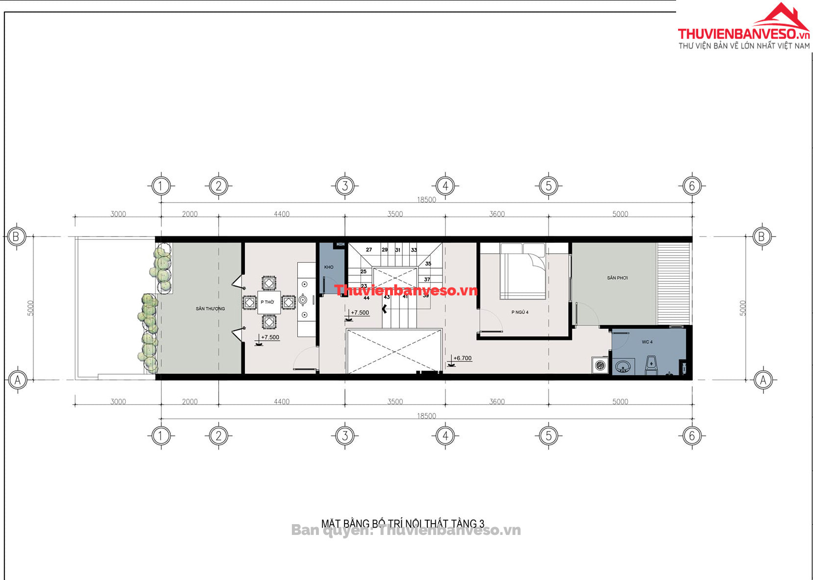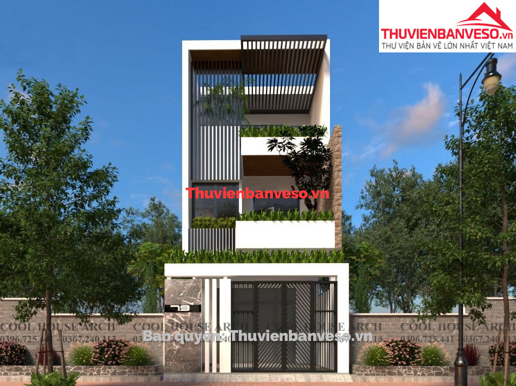 Bản vẽ nhà phố 3 tầng mái thái KT 6.5 x 17m full kiến trúc, dự toán