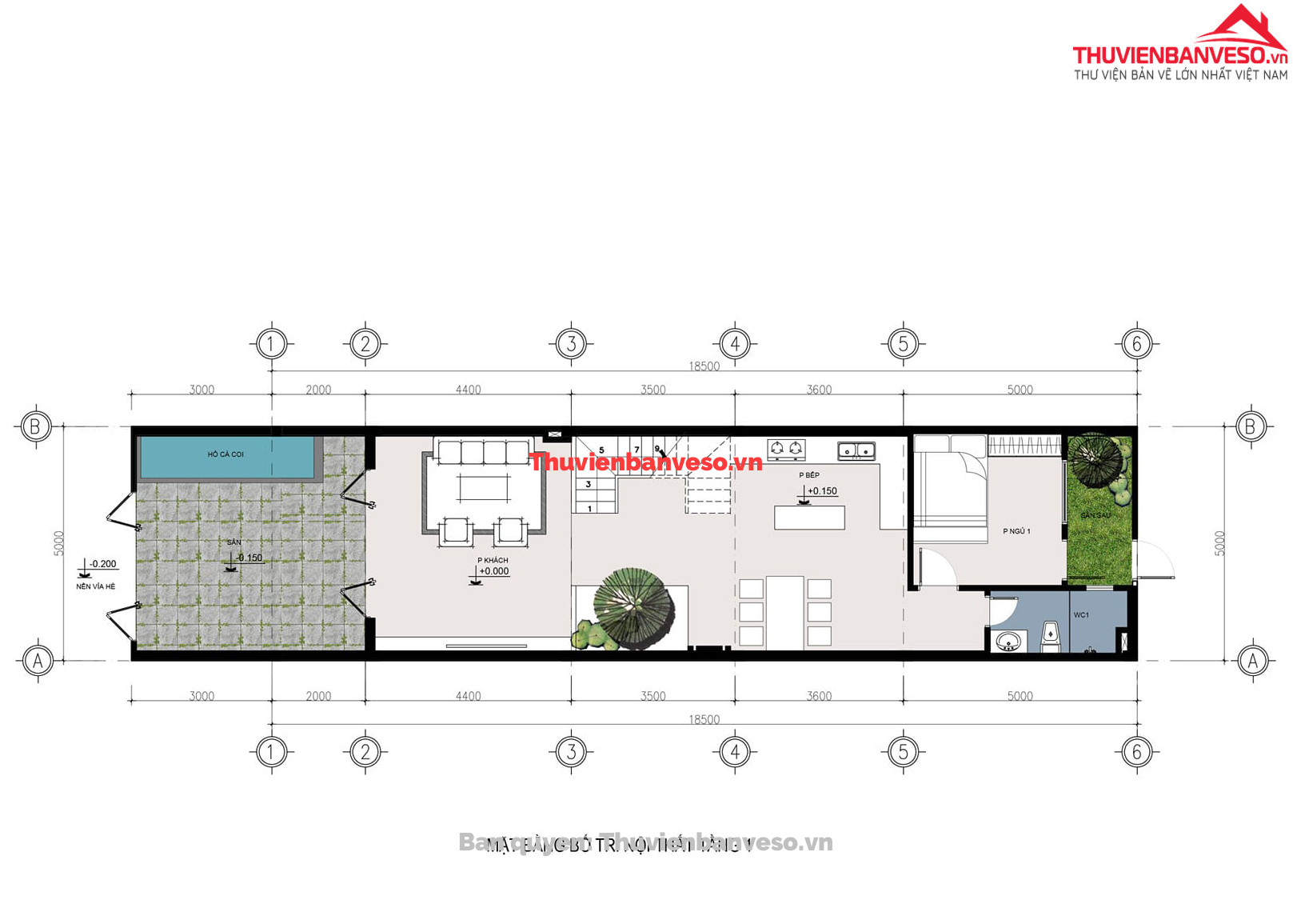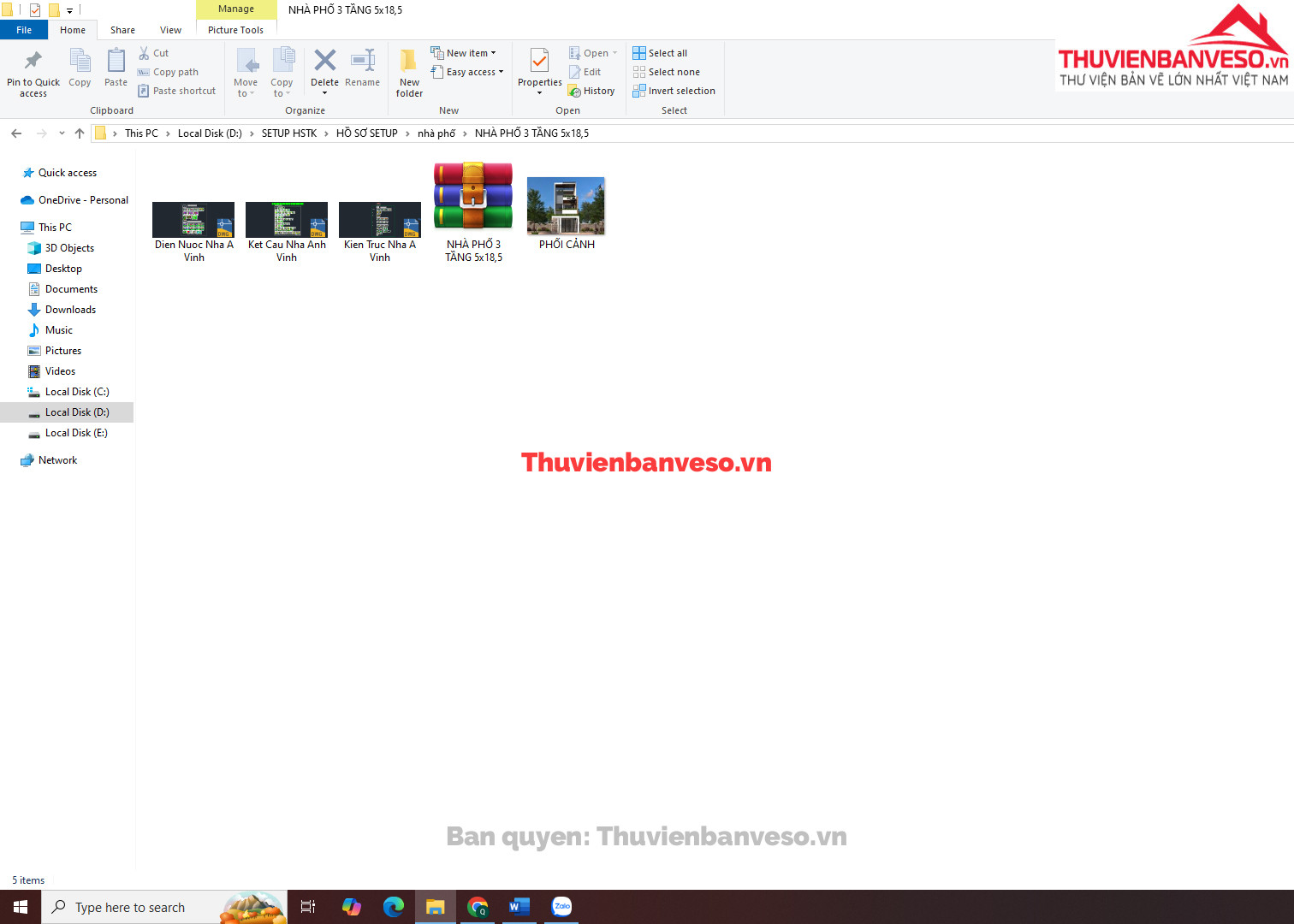 Bản vẽ thiết kế Nhà phố 3 tầng 5x18,5m (Hồ sơ thi công full kiến trúc, kết cấu, điện nước)