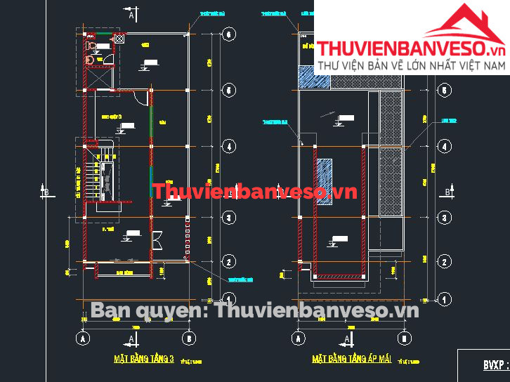 Bản vẽ nhà phố 3 tầng mái thái KT 6.5 x 17m full kiến trúc, dự toán