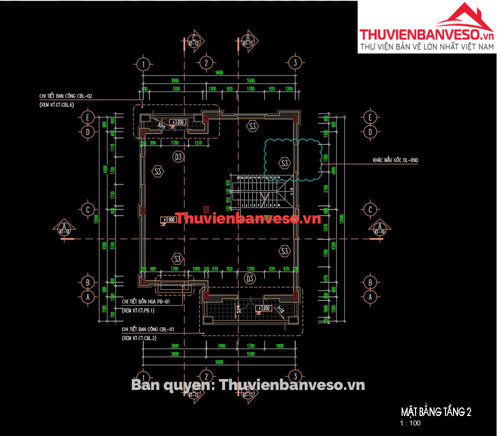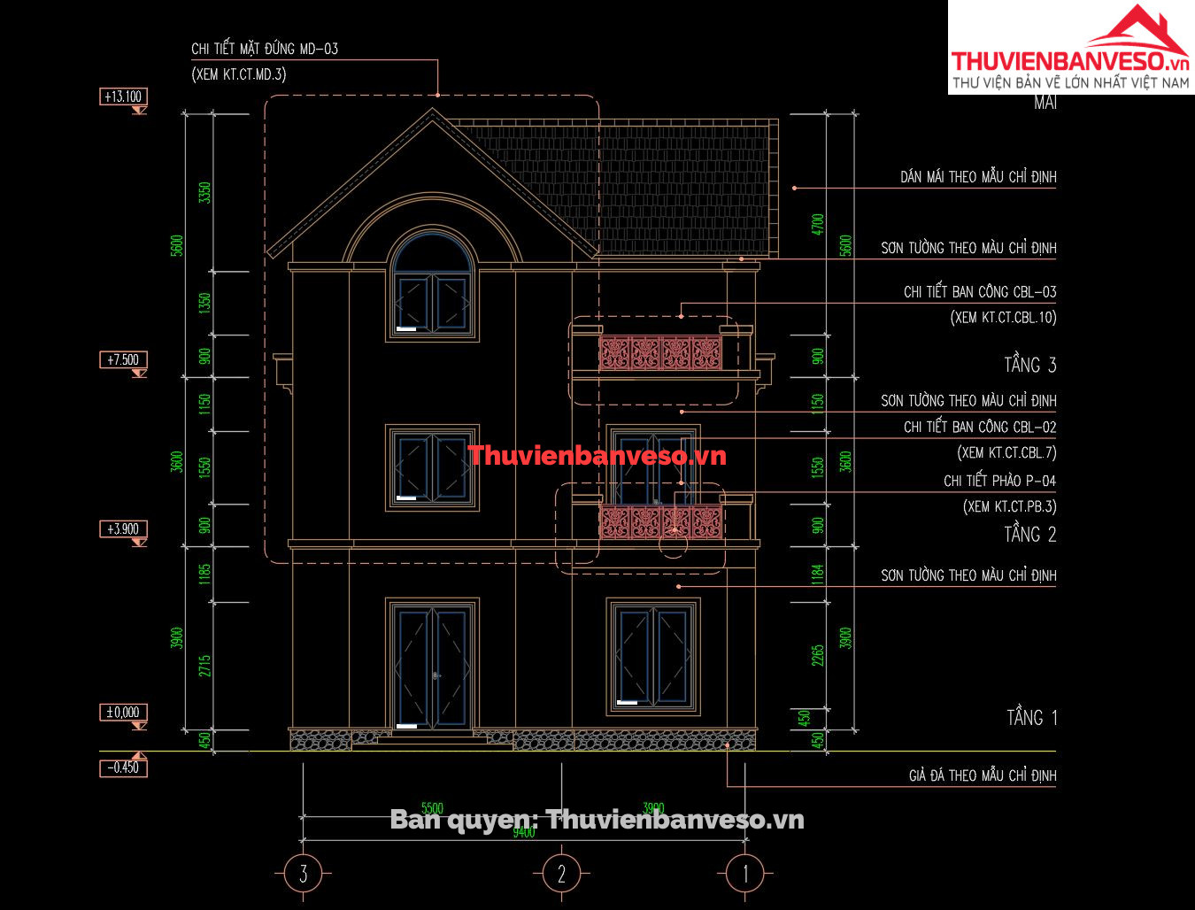 Biệt thự mái thái 3 tầng, kích thước 9.4x12.6m, đầy đủ kiến trúc, kết cấu -biệt thự vincom Long Biên